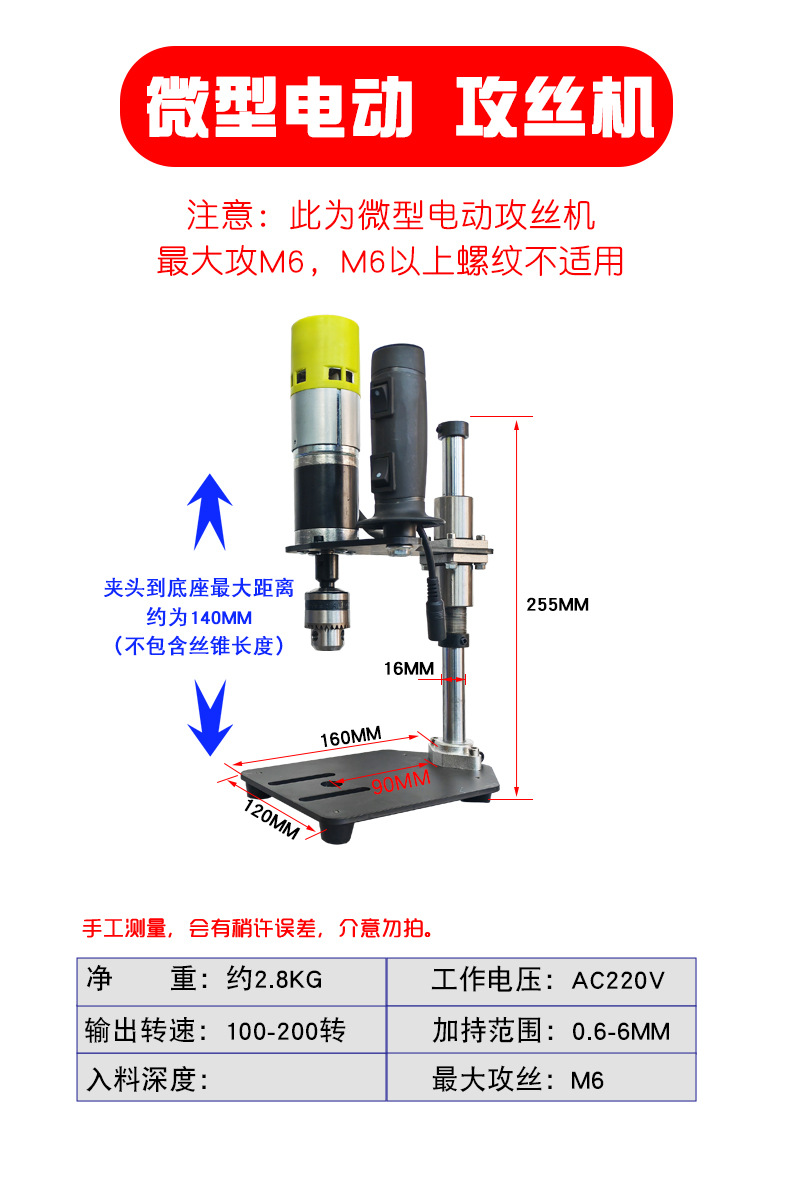 Портативная маленькая электрическая машина для нарезки резьбы 220В, регулируемая скорость, многофункциональная, для обработки металлической резьбы, хозяйственный инструмент