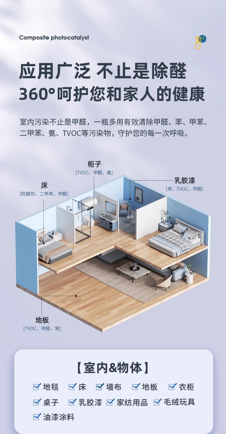 Зебао фотокаталитический агент для удаления формальдегида, мощный спрей для нового дома, очиститель воздуха