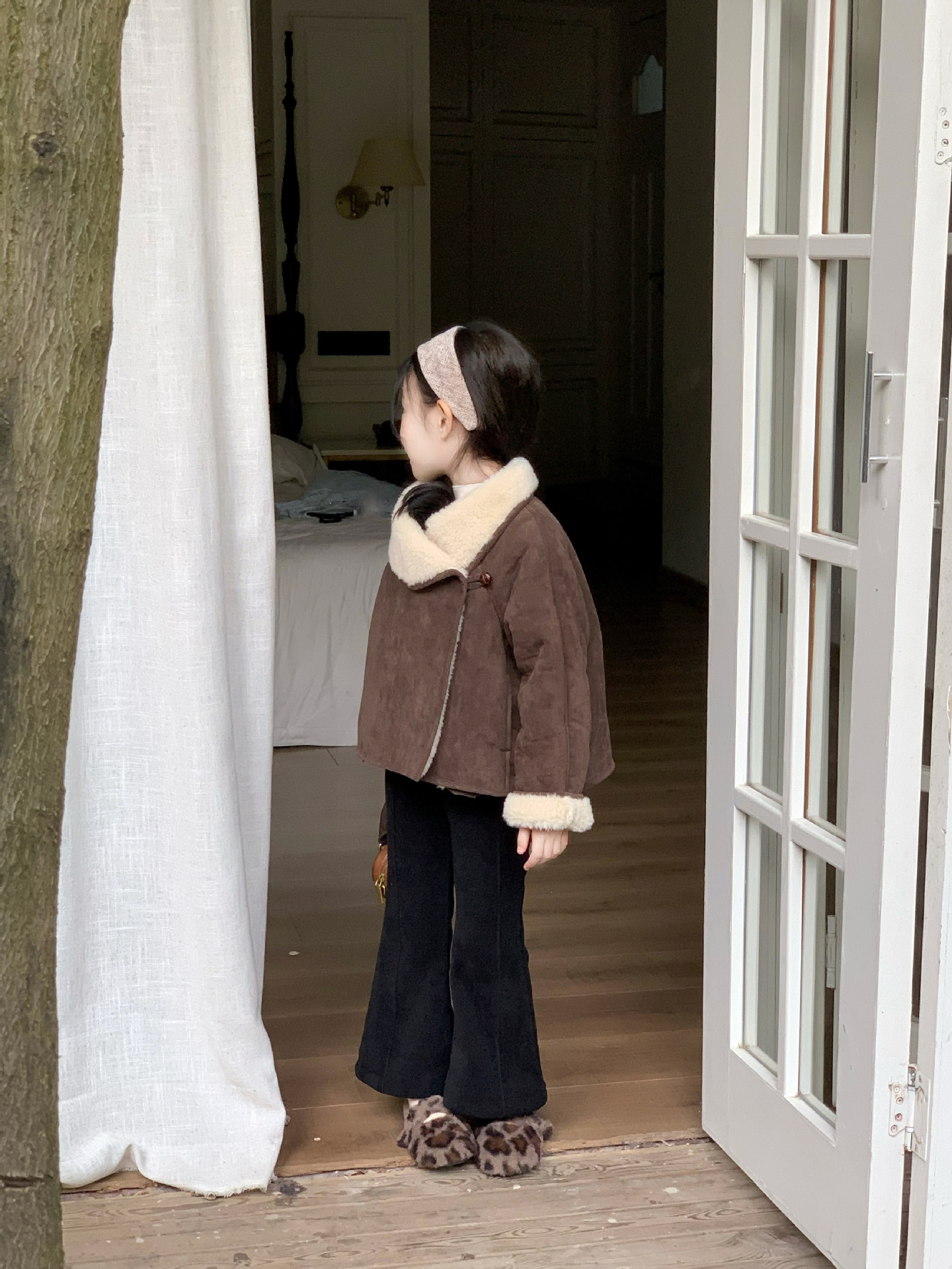 Куртка из замши для девочек, осень и зима 2025 года, корейский стиль, интегрированная утолщенная теплая верхняя одежда для девочек