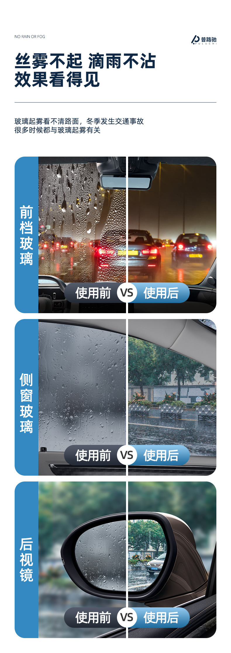 Антифоггинг агент Puluchi для лобовых стекол, автомобильные принадлежности, водоотталкивающее средство для зеркал заднего вида, дефоггер и дождезащитный агент, необходимый инструмент для автомобиля