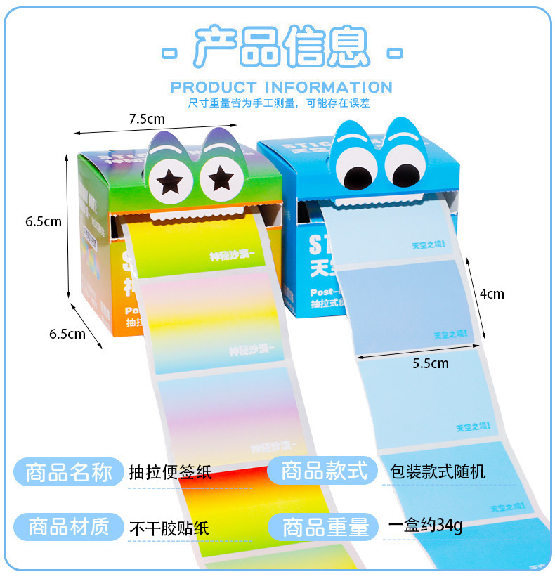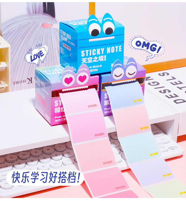 Креативные градиентные выдвижные стикеры, стильные, прочные, мультяшные, маленькие канцелярские подарки оптом