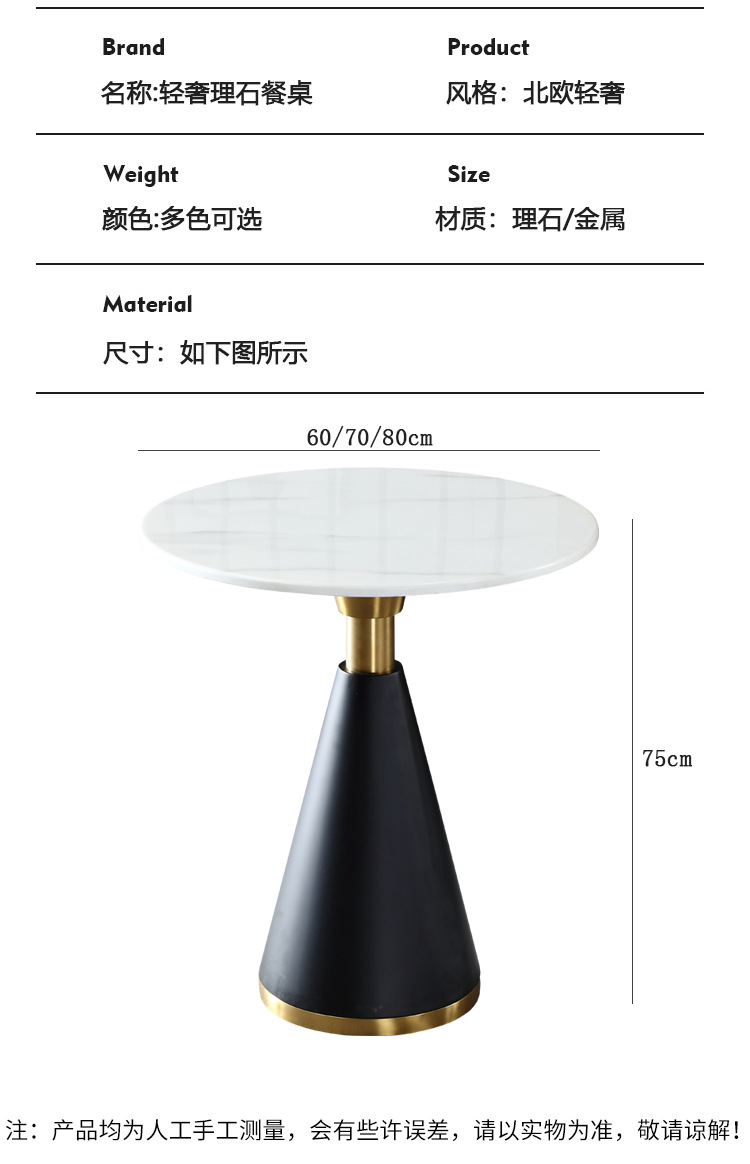 Небольшой круглый стол в итальянском стиле для офиса, легкий роскошный стол для переговоров, маленький кофейный столик, столик у дивана, поверхность для отеля и дома
