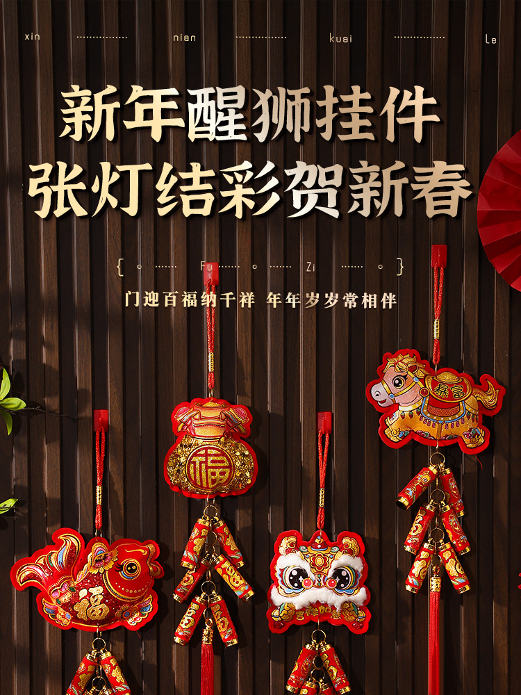 2026 год Лошади, подвес с петардами, новогодние украшения, весенний фестиваль, гостиная, мешочек благословения, настенное украшение