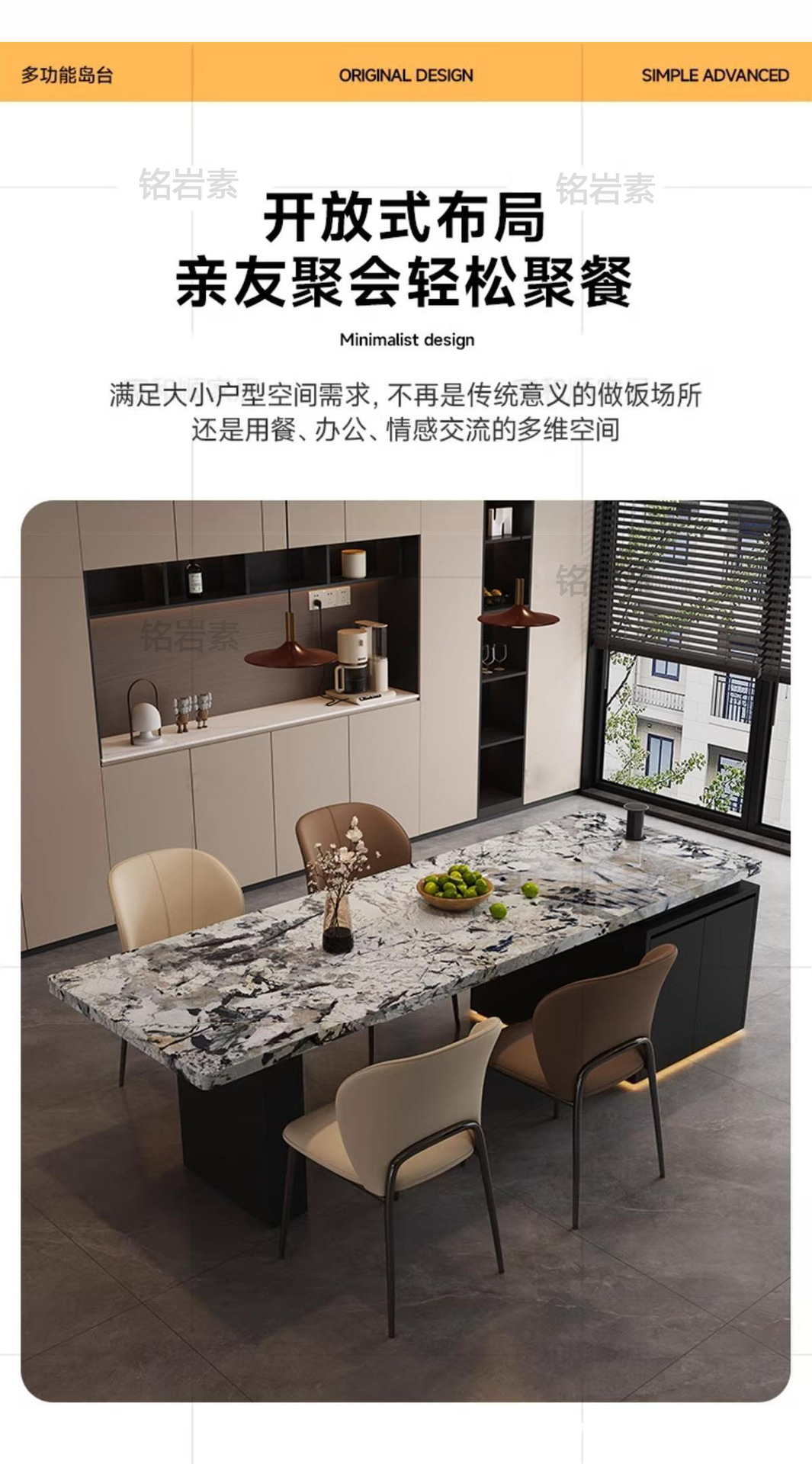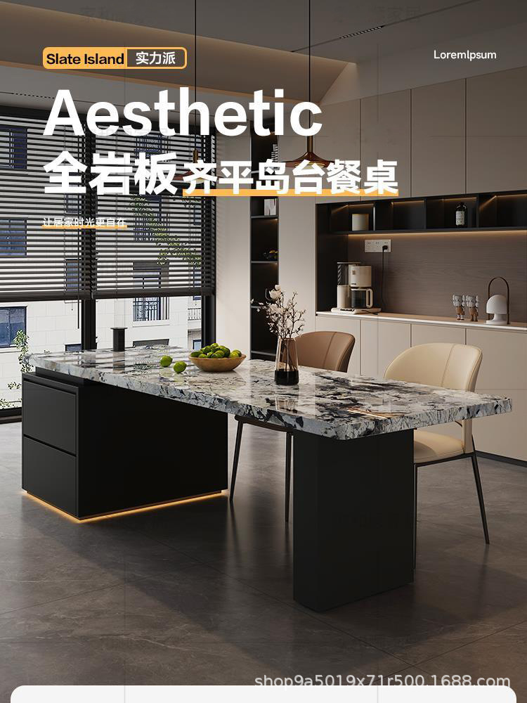 Интегрированный островной стол и обеденный стол для дома, минималистичный, из каменной плиты, многофункциональный, с креслами, островной стиль
