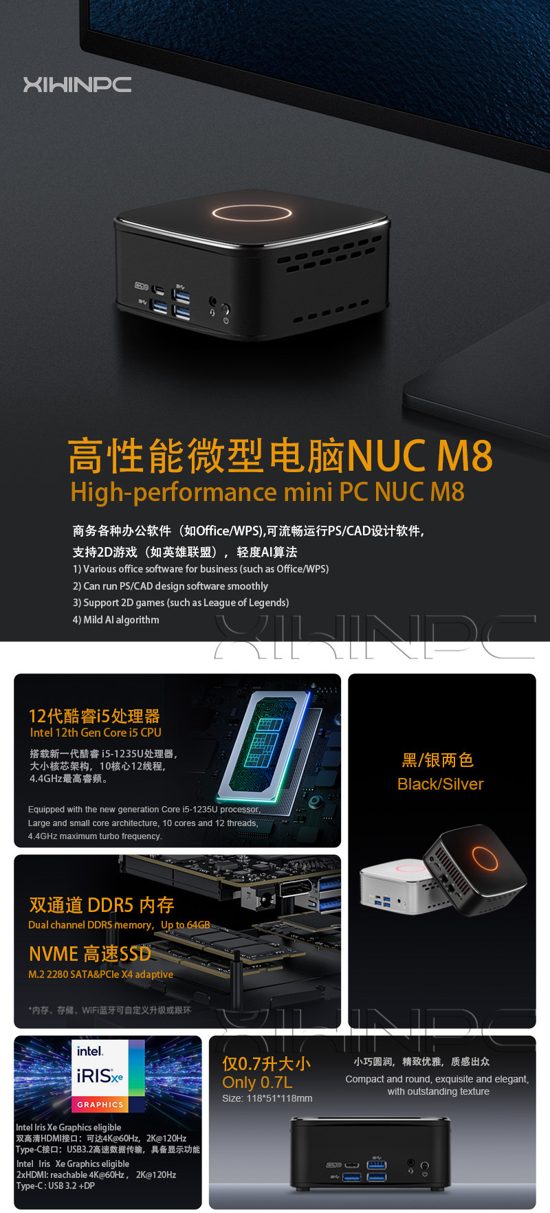 Мини-компьютер 12-го поколения Core i3/i5/i7 Nuc, двойной сетевой порт 2.5G, HDMI, Wi-Fi 6, Type-C