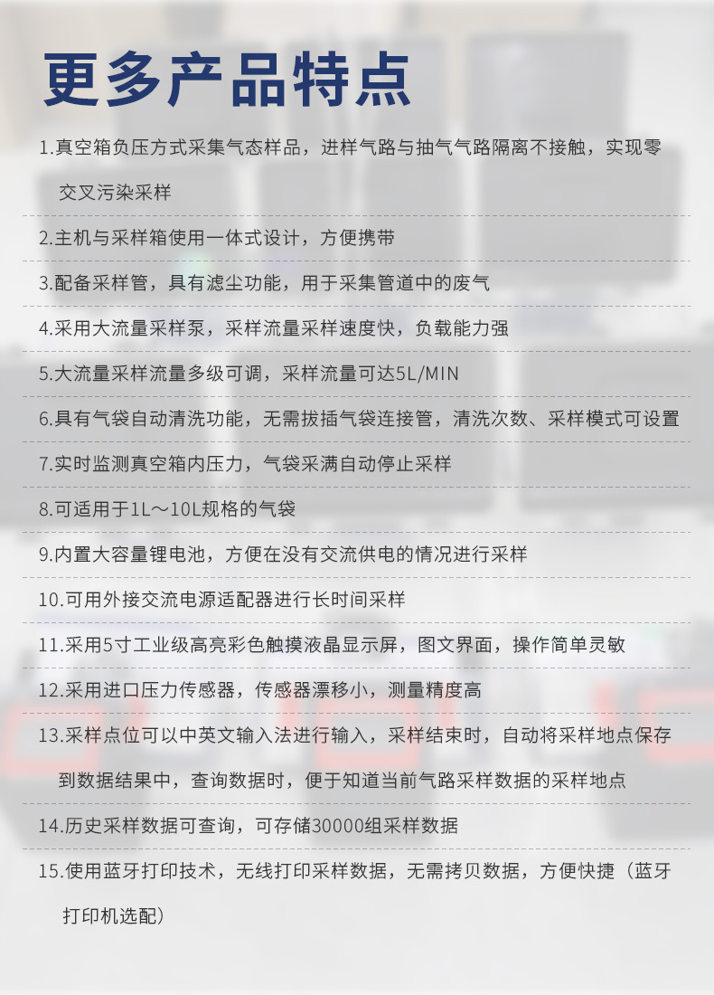 3.12实时监测真空箱内压力,气袋采满自动停止采样;