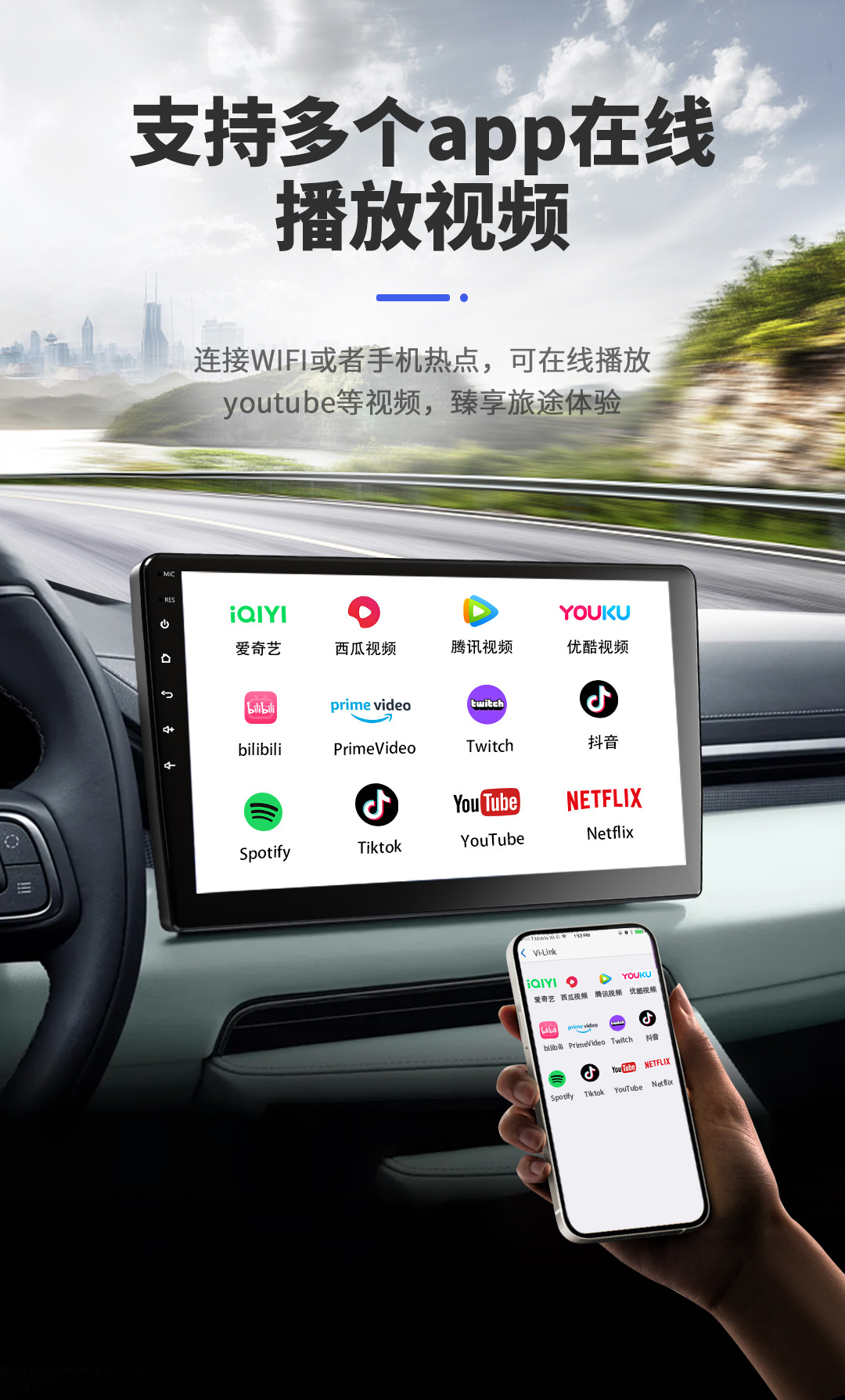 Универсальный рамный автомобильный MP5 плеер с большим экраном и беспроводным Carplay 9/10 дюймов, Linux автомобильная система