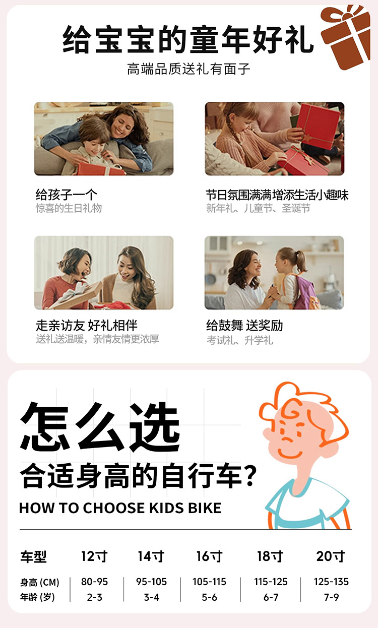 Детский велосипед для детей 6-12 лет с обучающими колесами, сертифицированные тихие колеса, 12-20 дюймов, только для трансграничных продаж