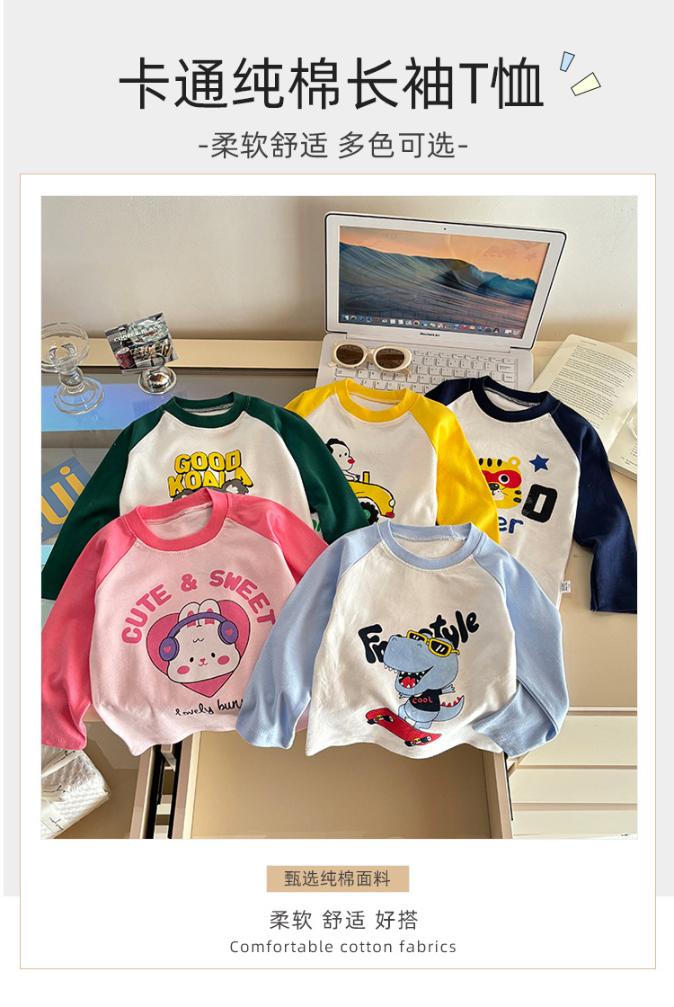 Детская футболка из чистого хлопка с длинным рукавом весенний базовый топ для мальчиков и девочек новая одежда для детей