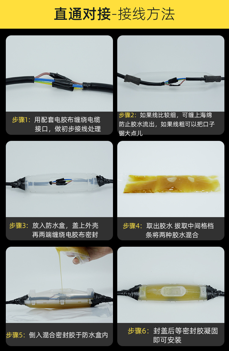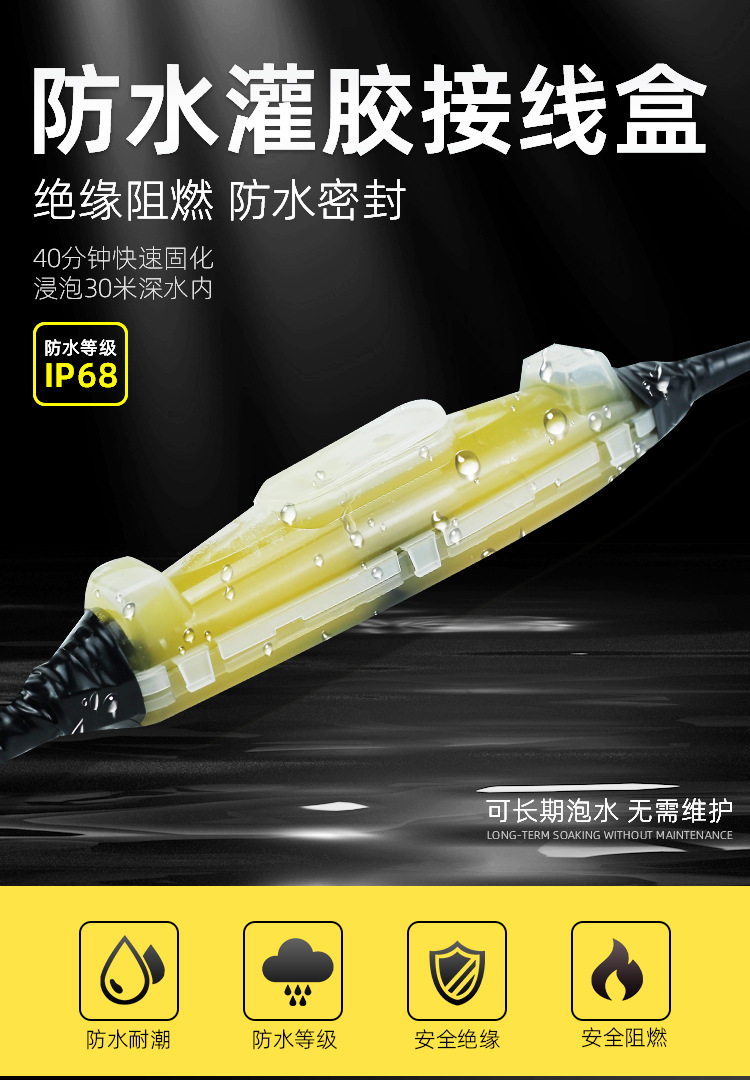 Водонепроницаемый соединительный ящик с заполнением кабелем Ip68, прямой соединительный ящик, подводный насос, светлая комната, уличный подземный, пропитка клеем