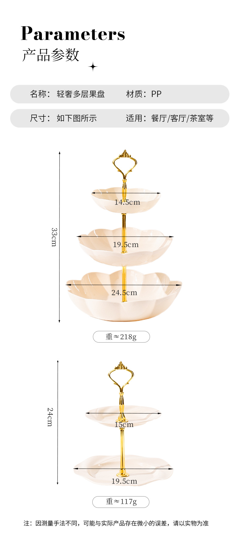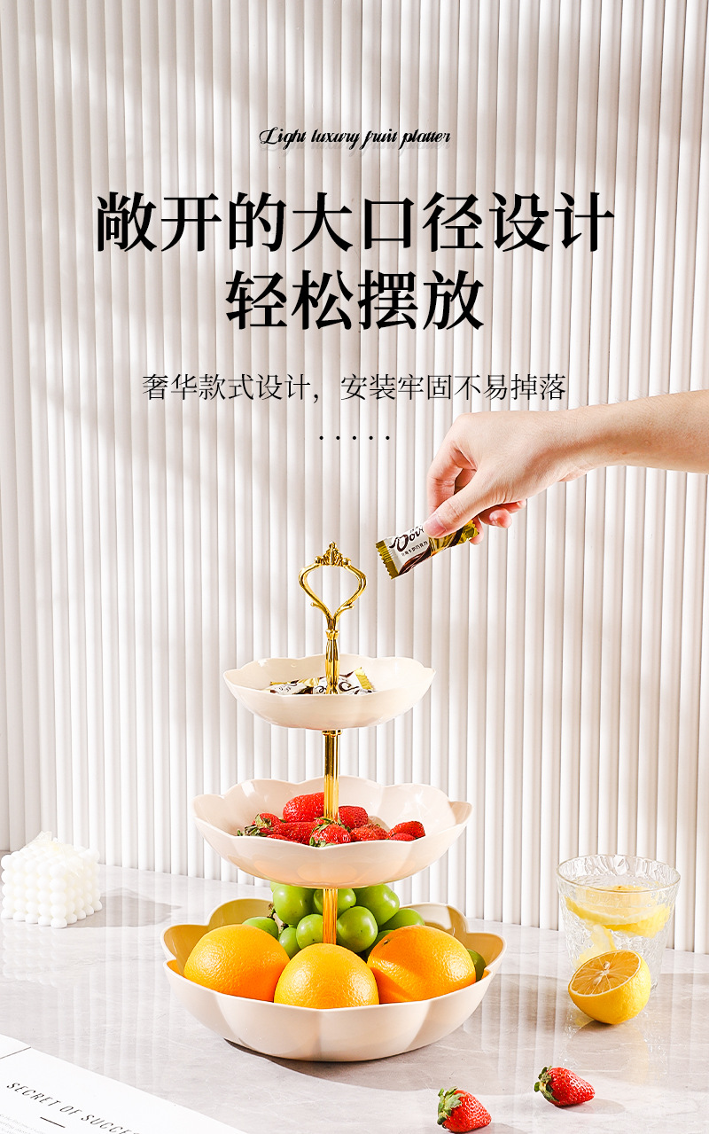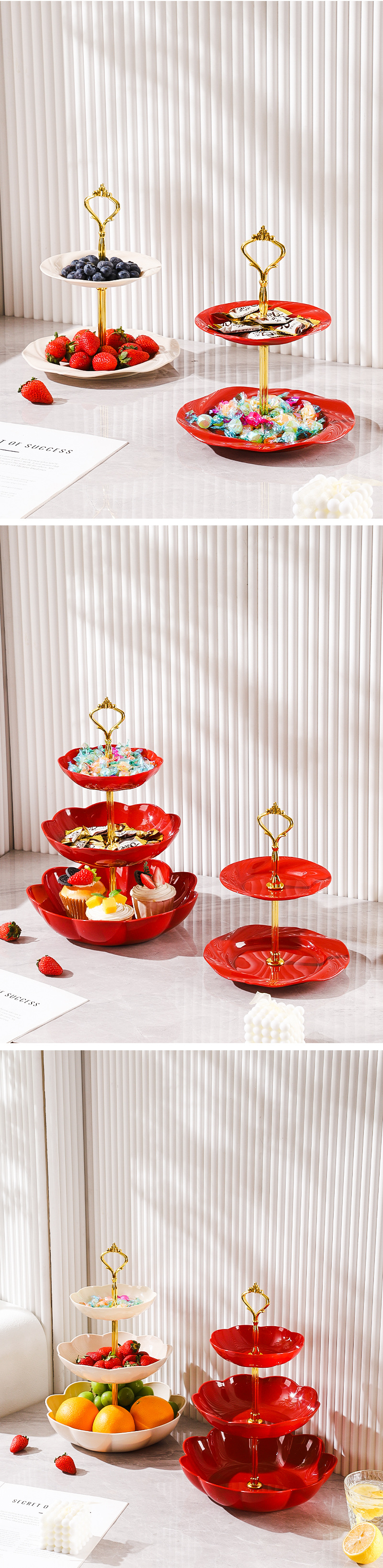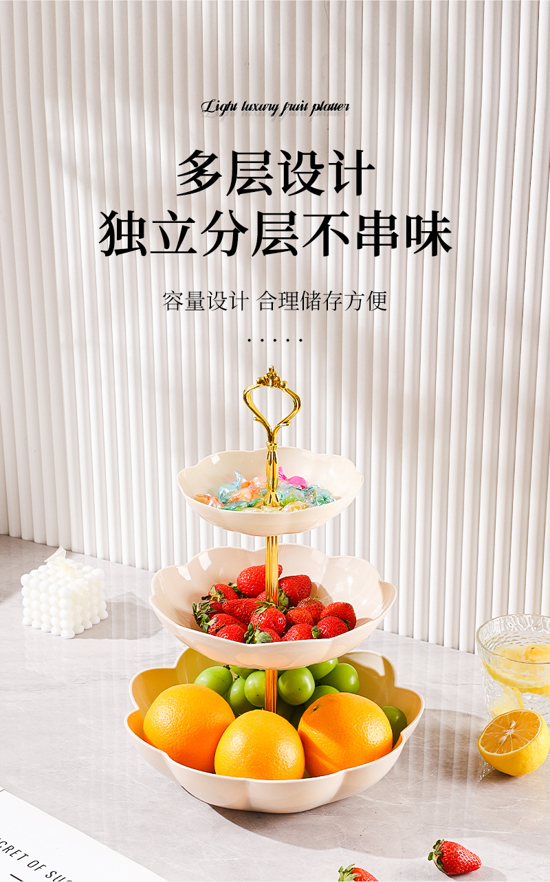 Легкая роскошная пластиковая многоуровневая фруктовая тарелка в форме цветка для гостиной и чайной комнаты, трехуровневая тарелка для закусок для коммерческого использования