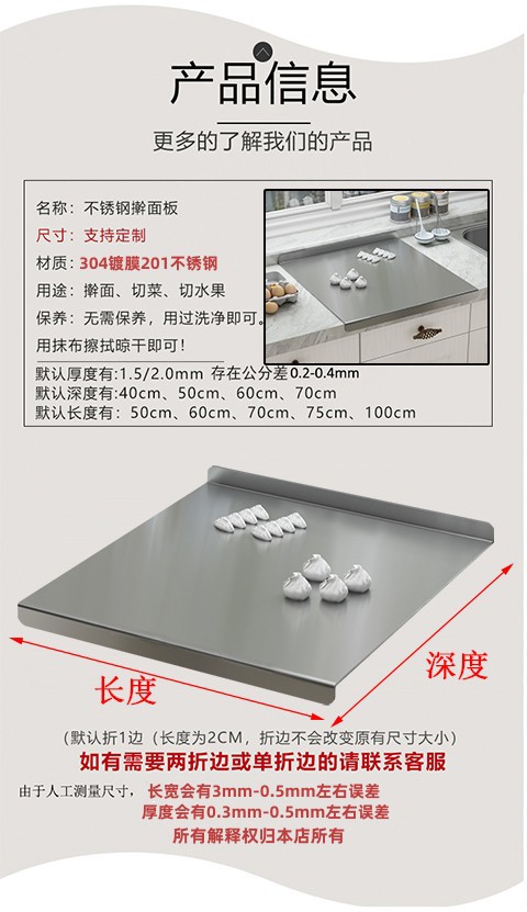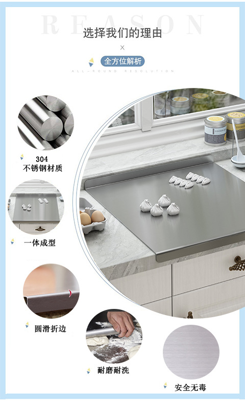 Разделочная доска из нержавеющей стали, толстая антимикробная доска для замеса, кухонная панель