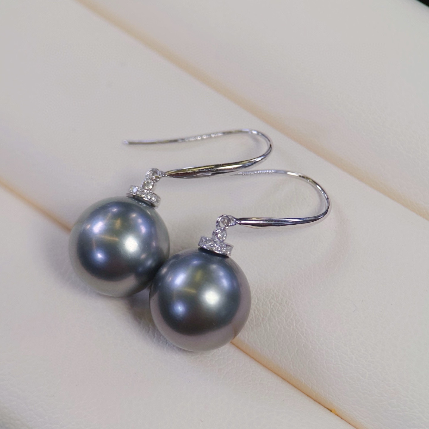 Аксессуары из платины Pt900 Простые ушки для серег с бриллиантом D0.03Ct, изображение с бусинами 10-11, 12-13мм