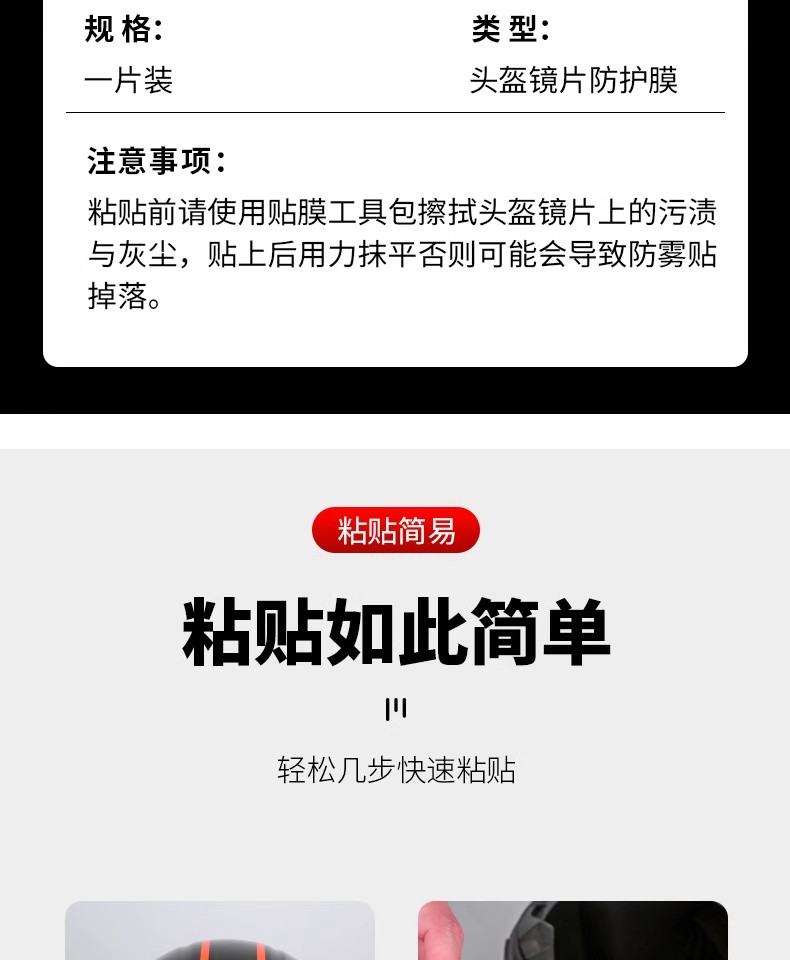 Стиль Thick glue type [helmet anti-fog film] attached to the inside