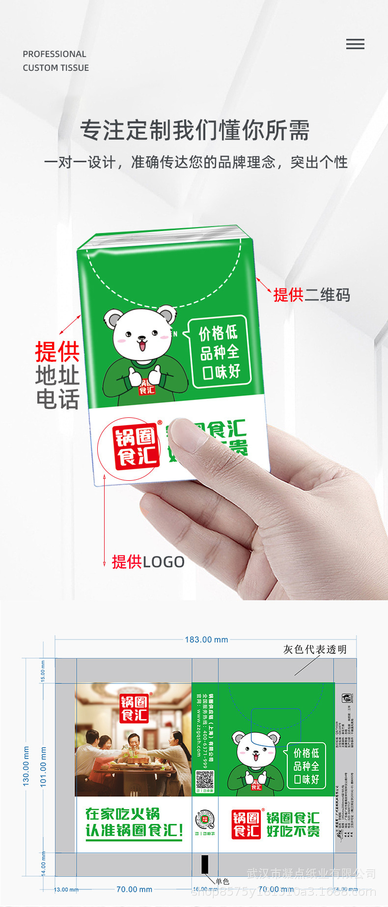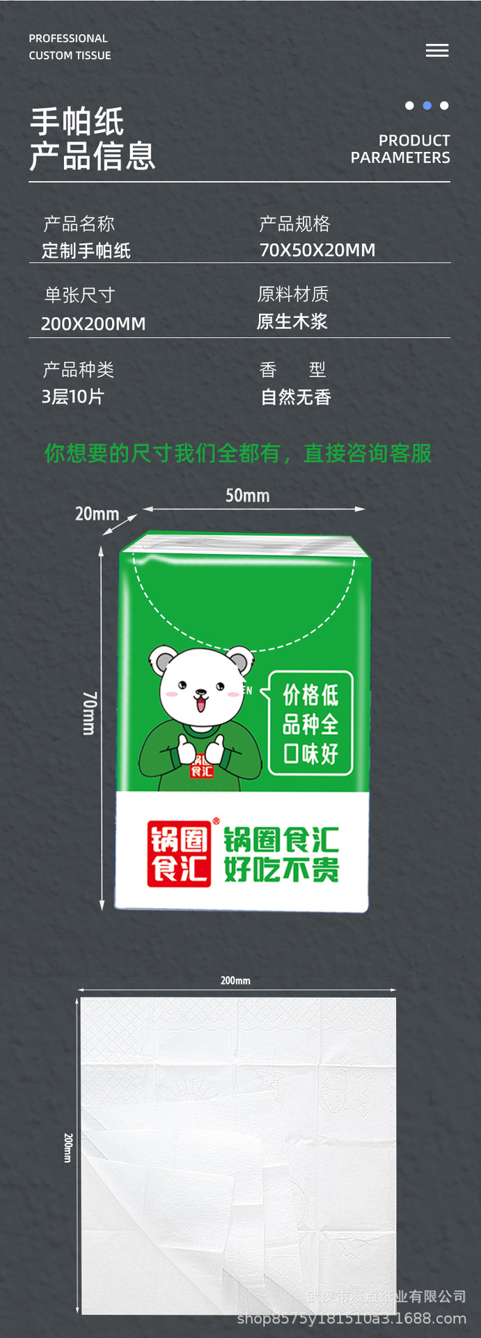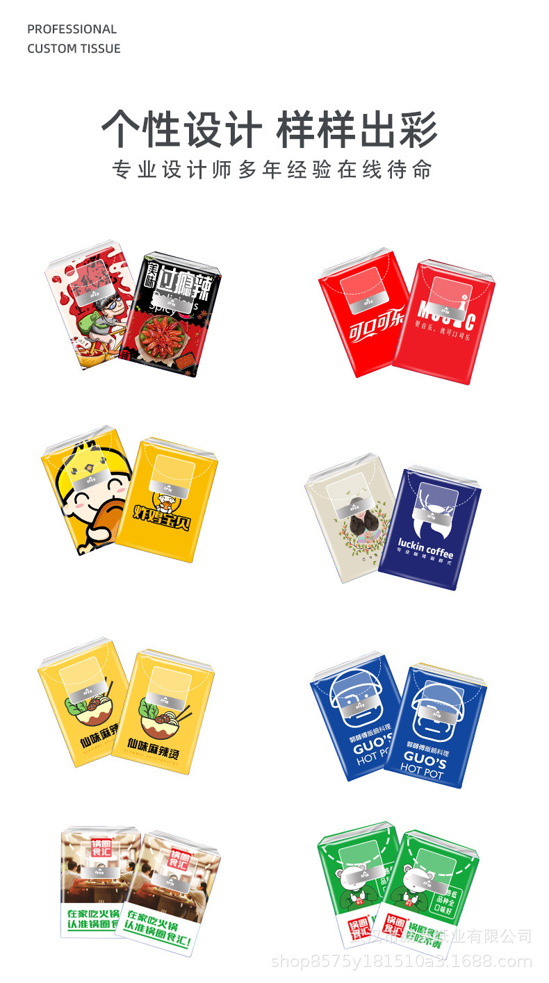 Рекламные бумажные полотенца с возможностью печати логотипа Малые сумки Салфетки для ресторанов Коммерческие платки Бумажные индивидуальные подарки