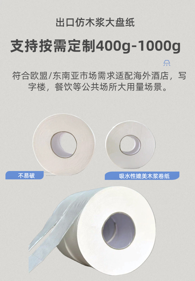 Экспорт в ЕС и Юго-Восточную Азию Имитация древесной массы Большая бумага Переработанная бумага Большой рулон туалетной бумаги Индивидуальный рулон туалетной бумаги для отелей