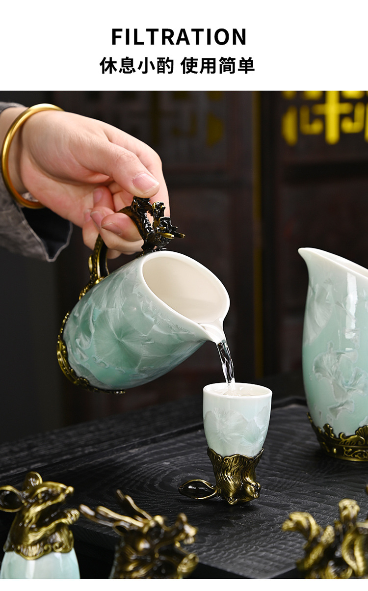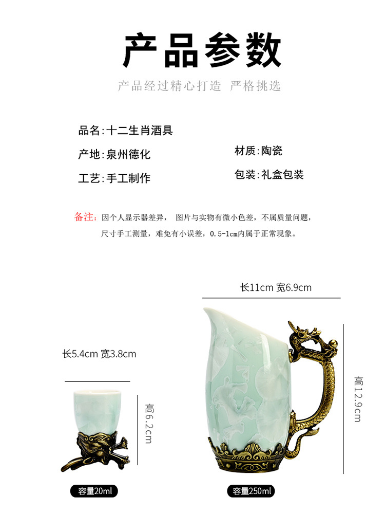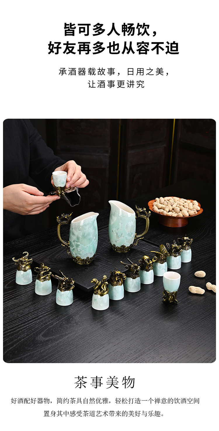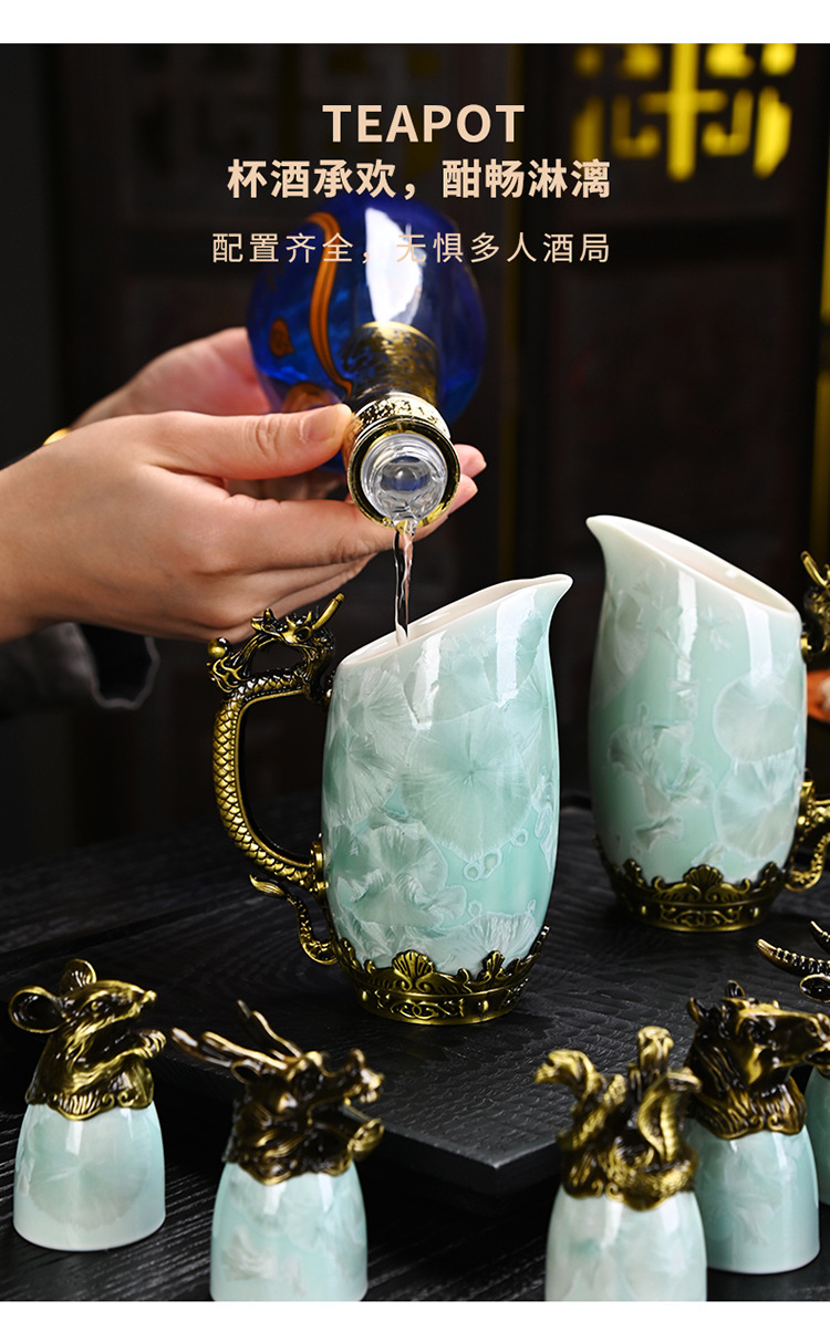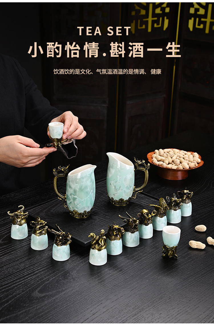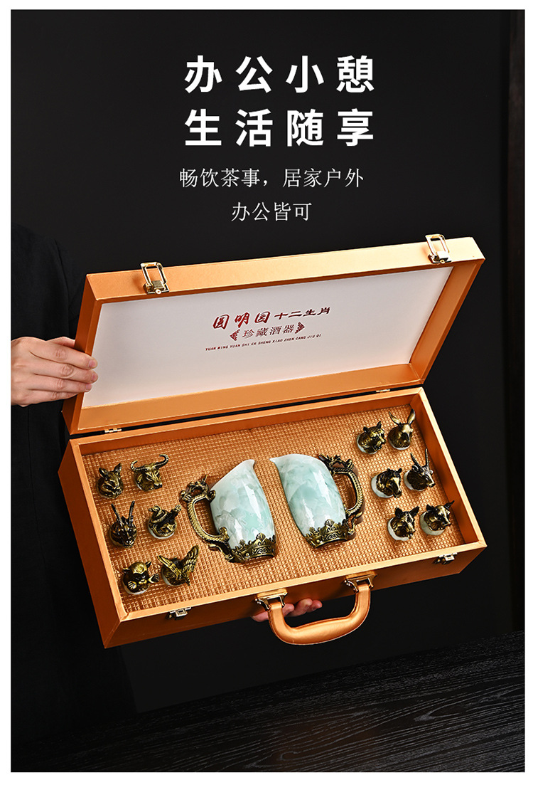 Набор для вина из керамики в китайском стиле с двойным горшком, двенадцать знаков зодиака, белые бокалы для вина, двойной разделитель для вина, подарочная коробка