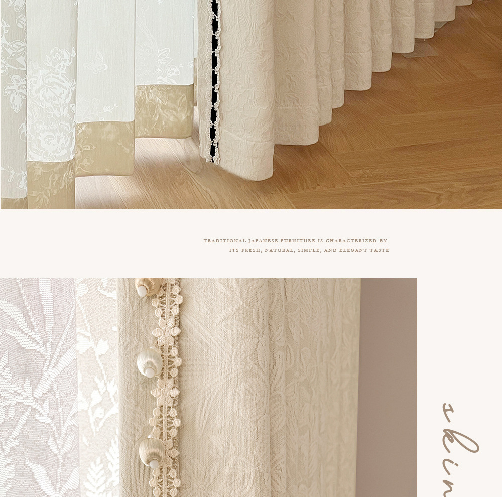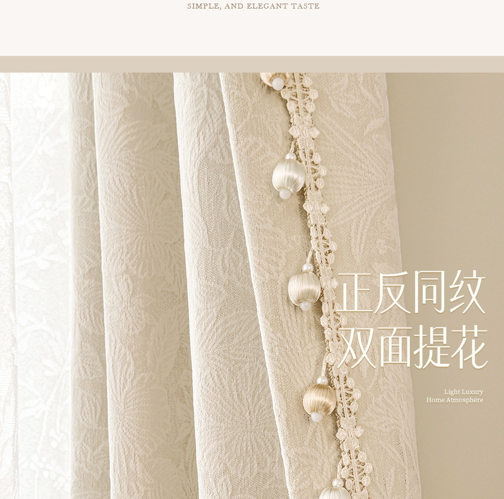 Занавеска затемняющая двусторонняя шенилле черная французская гостиная розовая жаккардовая кремовая стильная доступная роскошь спальня 2025 новый стиль