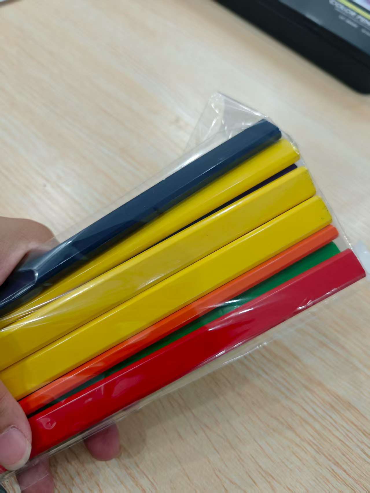 ✅ 多色粗芯更实用:红蓝黄紫等多色可选,不同颜色可区分不同标记(如切割线/定位点);加粗铅芯(约2.8mm)硬度高,划线清晰不易断,深色/浅色板材都能轻松显色。
