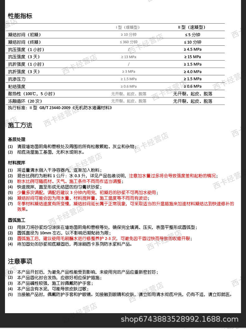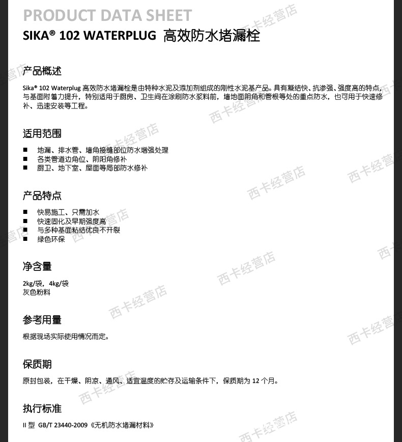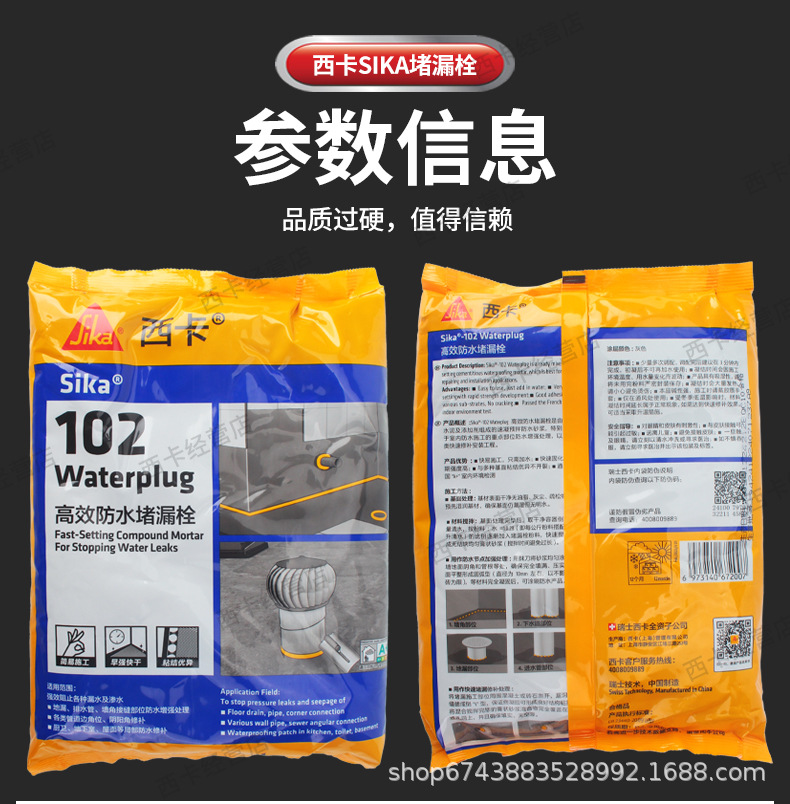 Sika-102 Водонепроницаемая герметизация высокой эффективности Высокопрочный антипротечный высоковязкий быстро сохнущий цемент