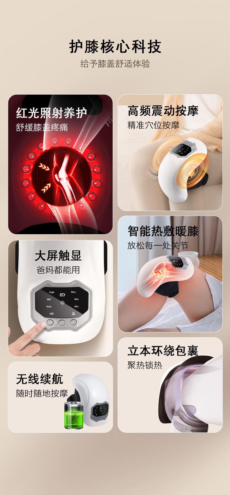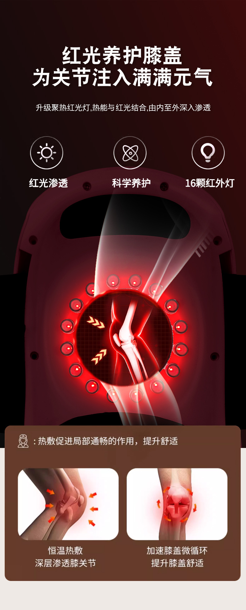 Новый массажер для коленей для домашнего использования, грелка с подогревом, красный свет, вибрация для старых холодных ног