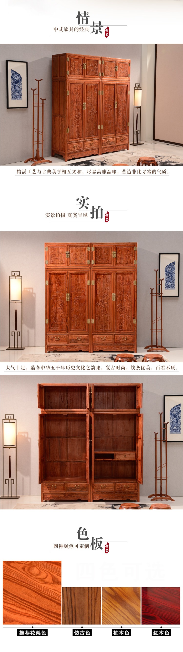 Новый китайский стиль, резной верхний шкаф с 4 или 3 дверями, шкаф для одежды, имитация классического стиля Мин и Цин, шкаф с решеткой из ананасового дерева