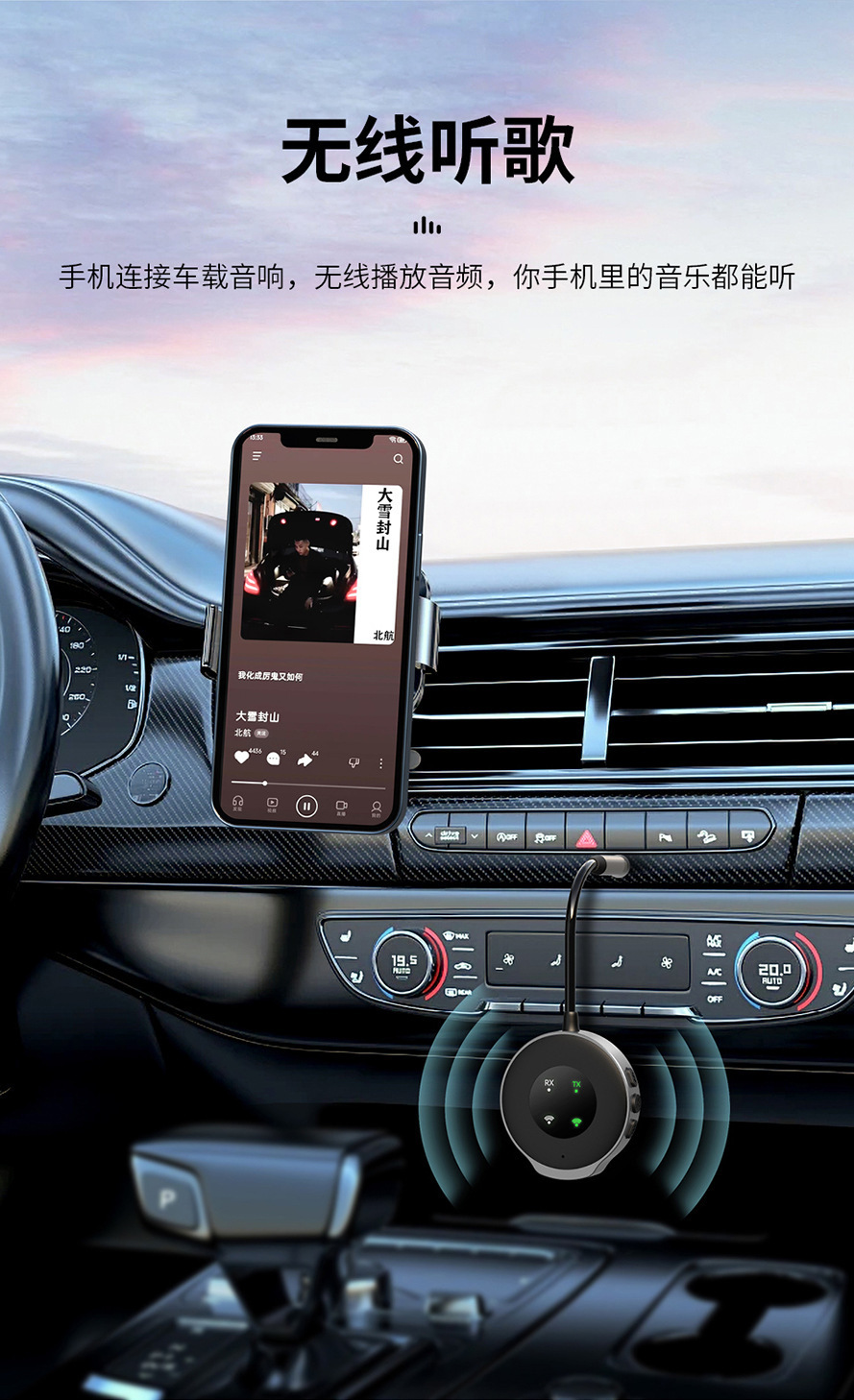 Автомобильный FM Bluetooth 5.3 Передатчик и Приемник Два в одном Беспроводной аудио адаптер для звонков