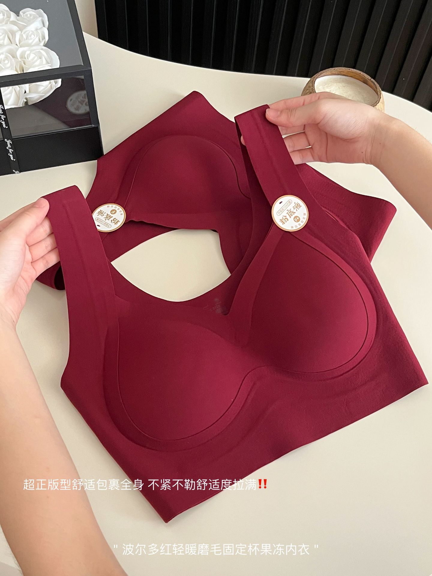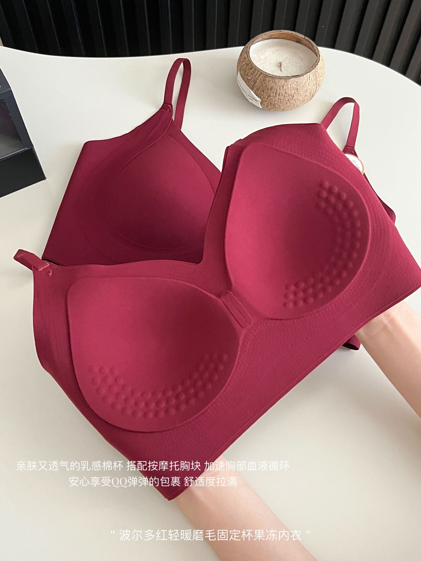 Бесшовный бюстгальтер бордового цвета с фиксированными чашками, мягкой поддержкой и эффектом пуш-ап для осени и зимы