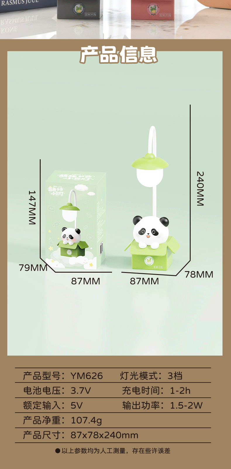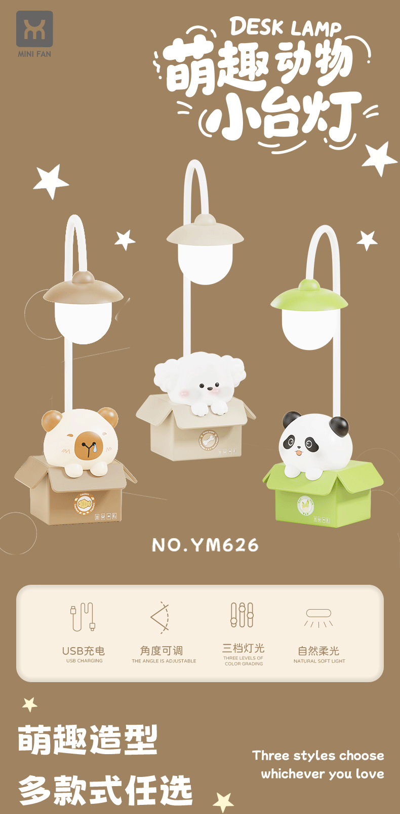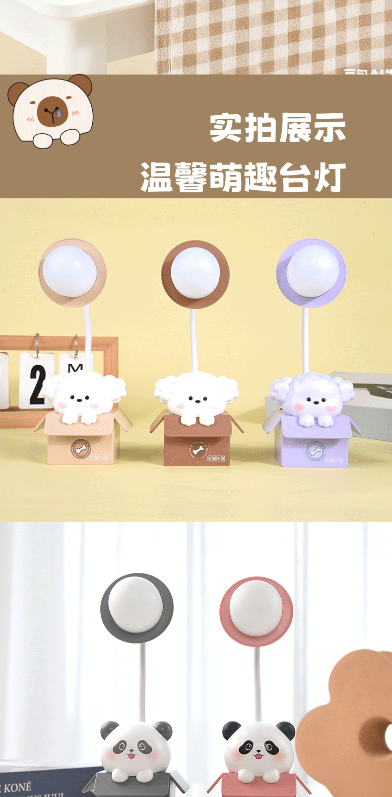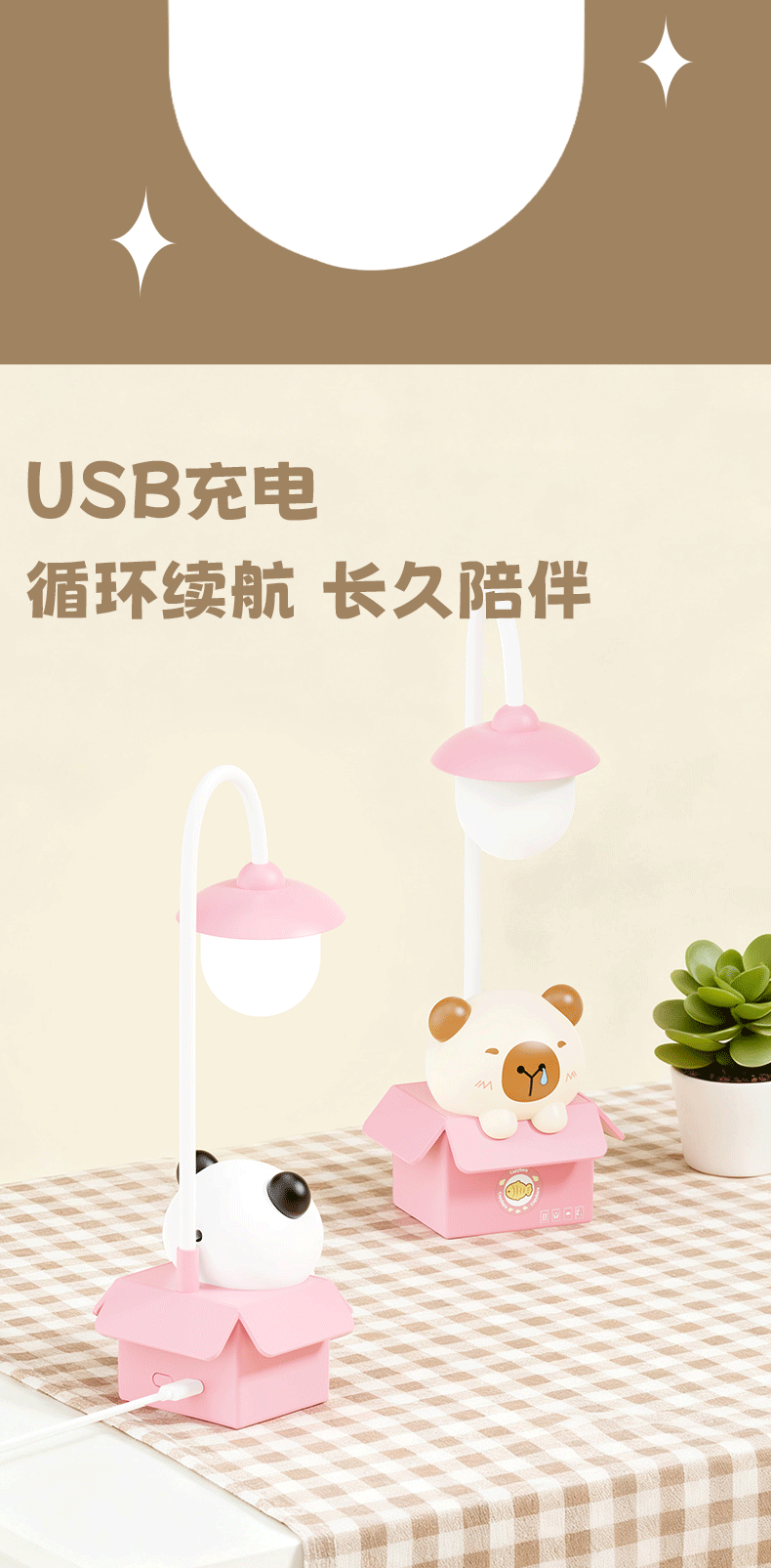 Настольная лампа в форме животного с LED, перезаряжаемая, защитная для глаз, для чтения и письма, ночник с USB, для спальни и прикроватной тумбочки