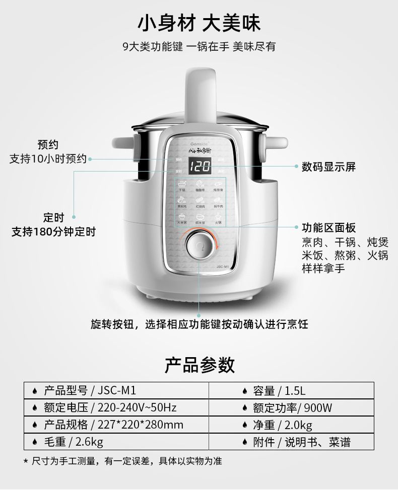 ![]() | Jiesai m1 (1.5 liter capacity) is suitable for 1-2 people | ¥517.1 / ≈ 6 237 ₽ | 1000 | 6132505539129 |
