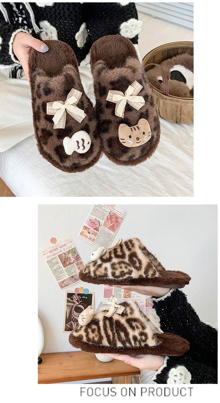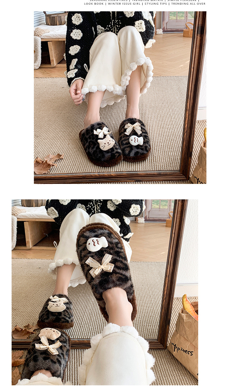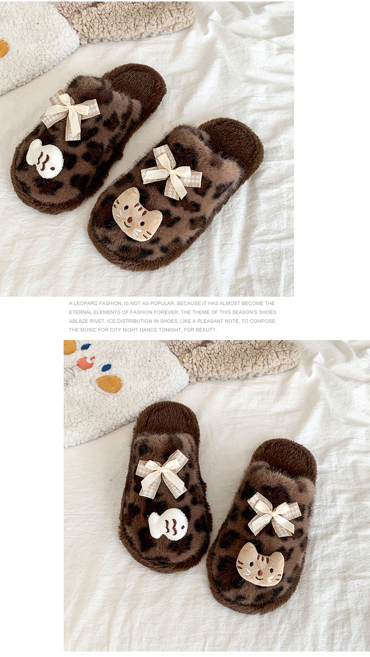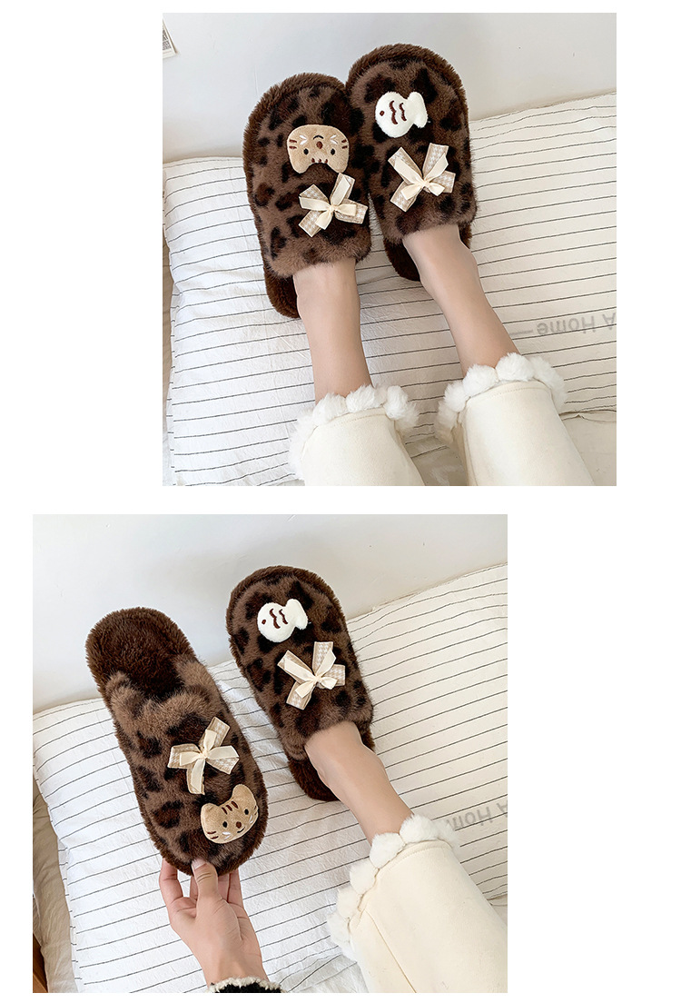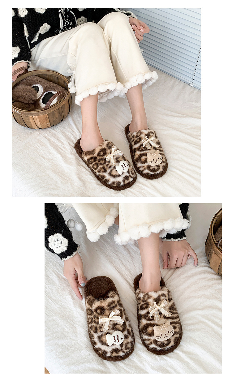 Шлепанцы с леопардовым принтом и мехом для женщин в стиле ретро, домашние теплые хлопковые шлепанцы