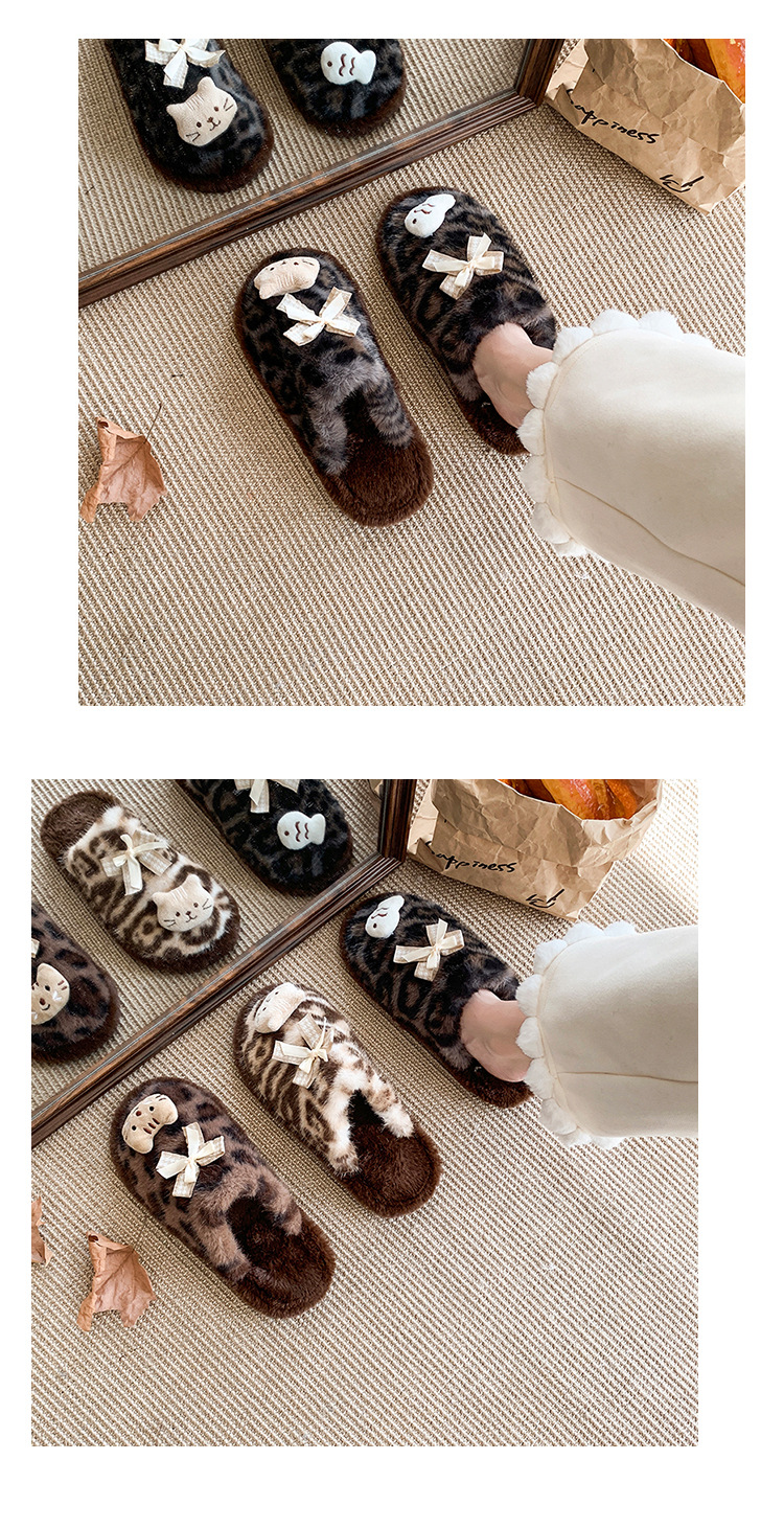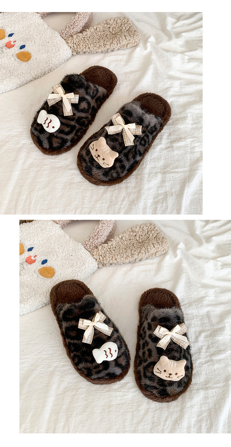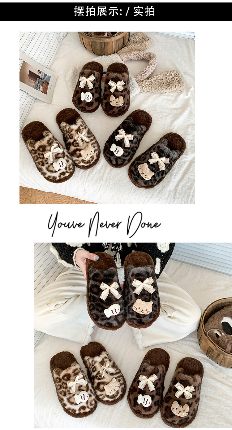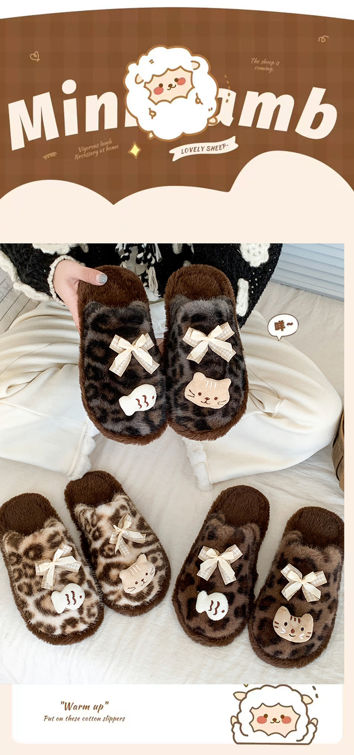Шлепанцы с леопардовым принтом и мехом для женщин в стиле ретро, домашние теплые хлопковые шлепанцы