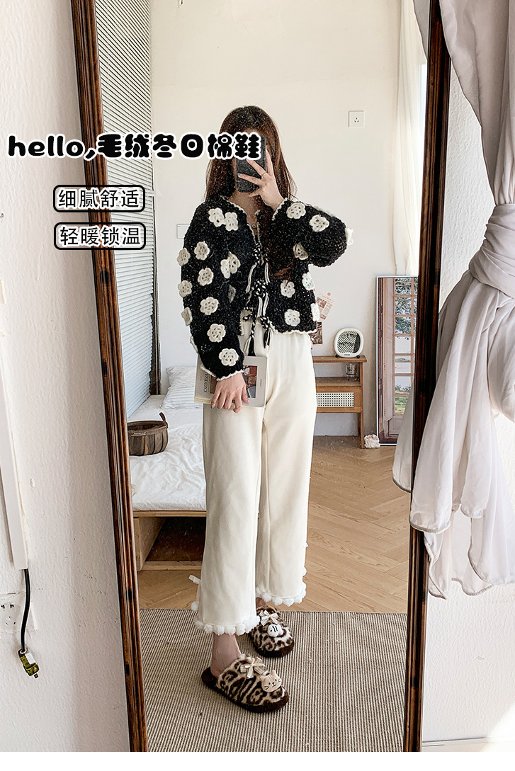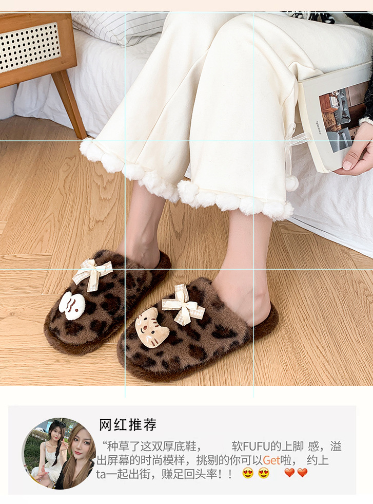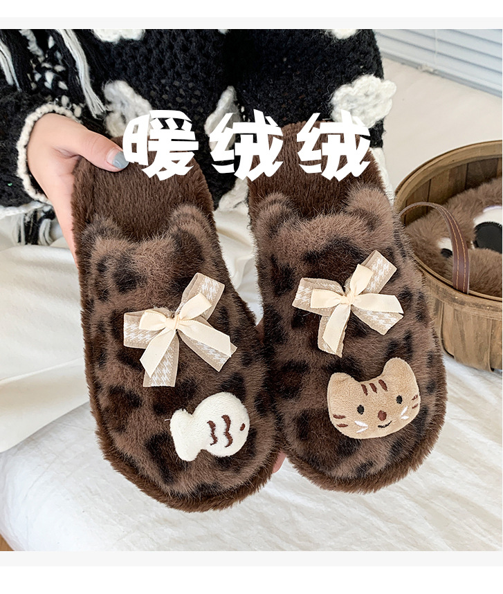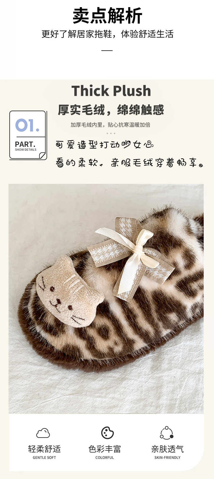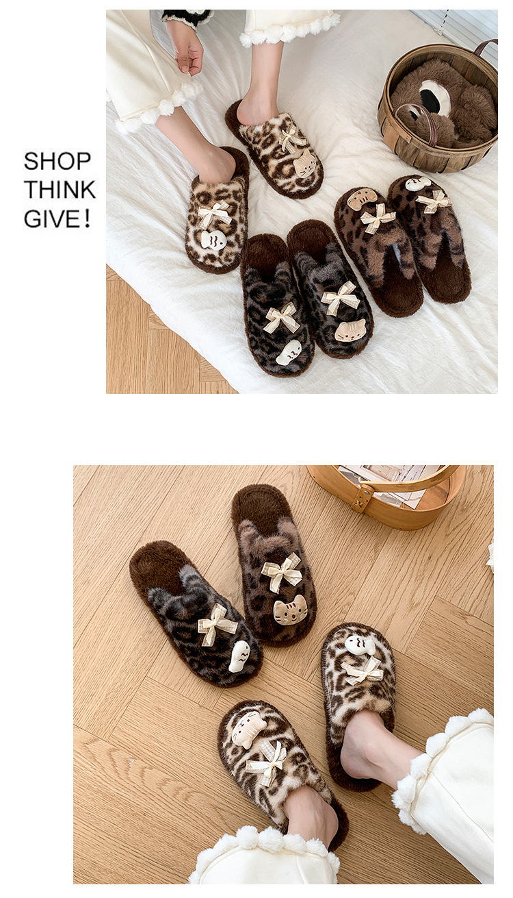 Шлепанцы с леопардовым принтом и мехом для женщин в стиле ретро, домашние теплые хлопковые шлепанцы