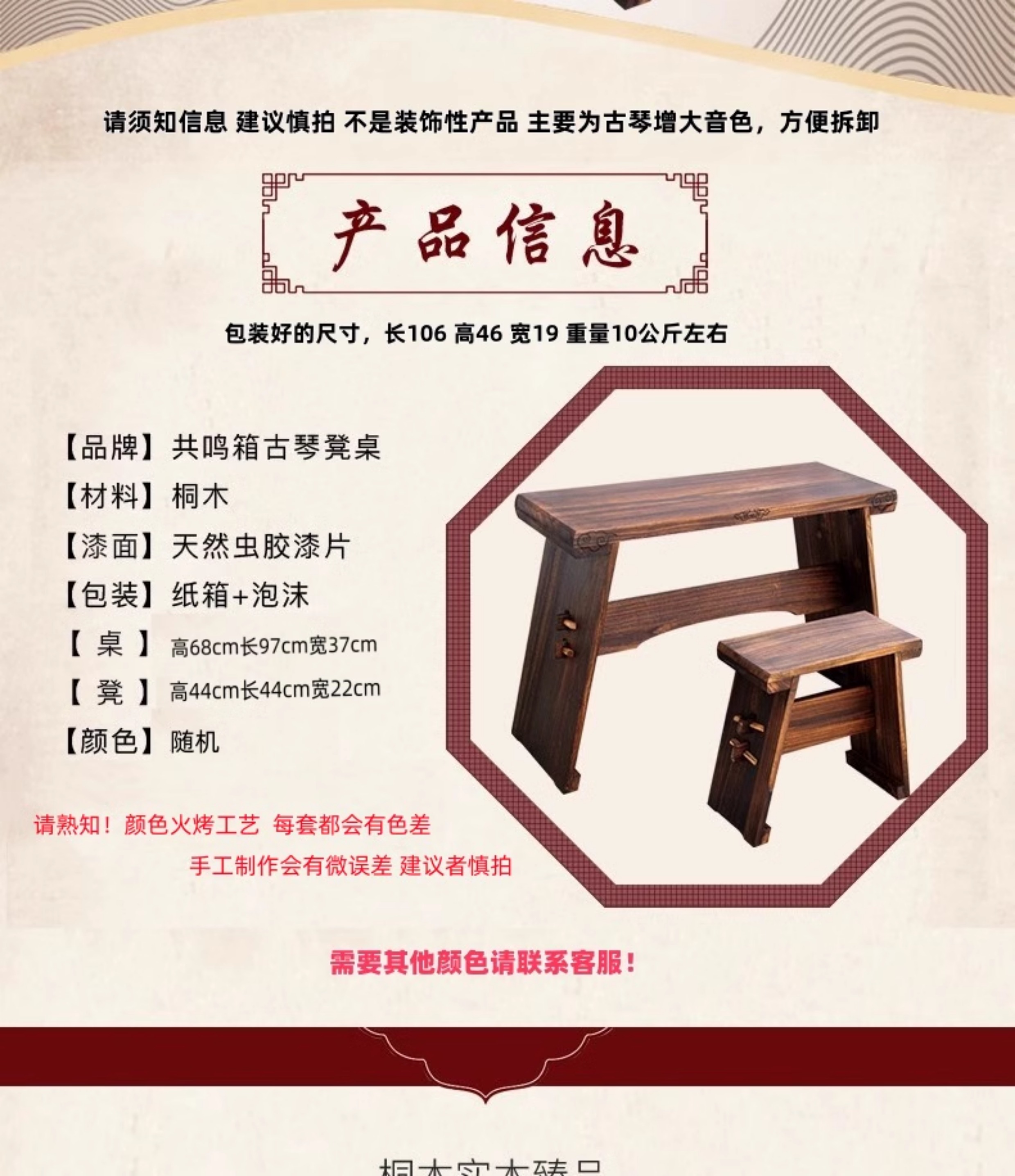 Стол и табурет из массива дерева для гуциня, резонирующий ящик из павловнии, стол для гуциня, чайный стол, стол для китайской каллиграфии, съемный и портативный имитационный стол для гуциня