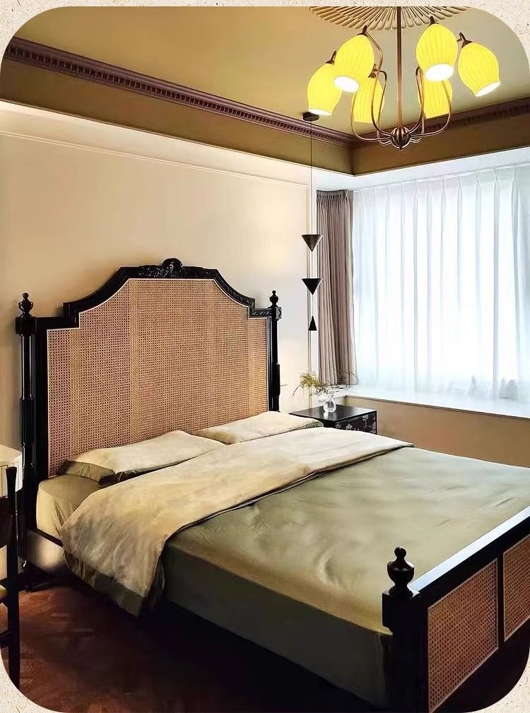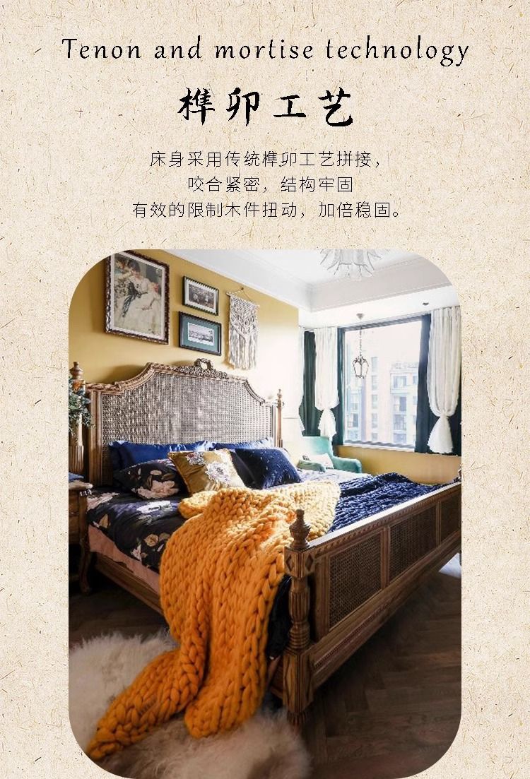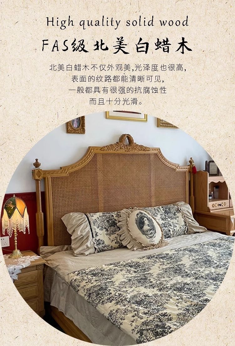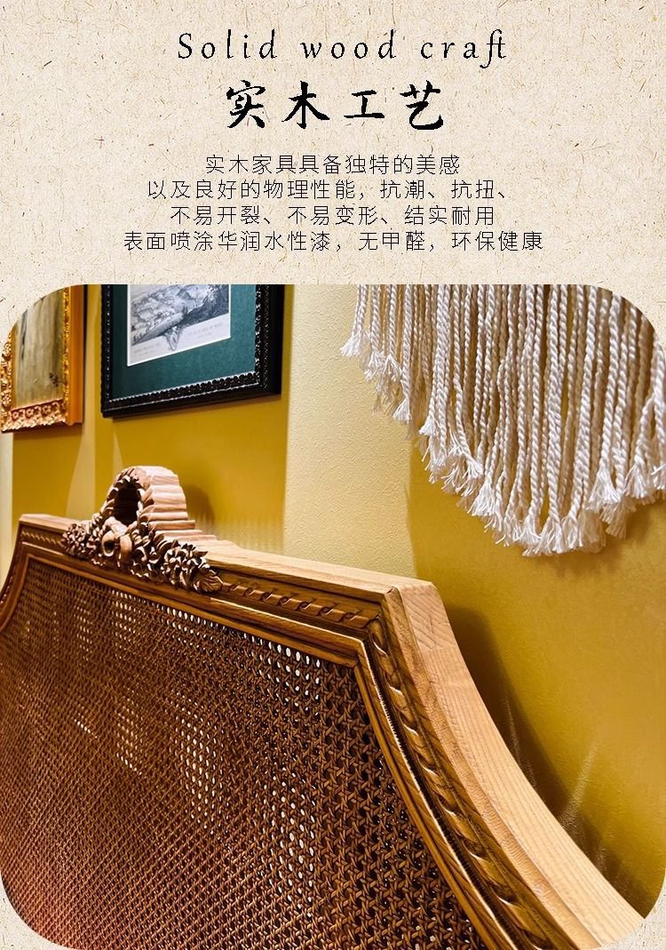 Кровать Хепберн, французская ретро кровать из ротанга 1.8м, современная кровать из ротанга