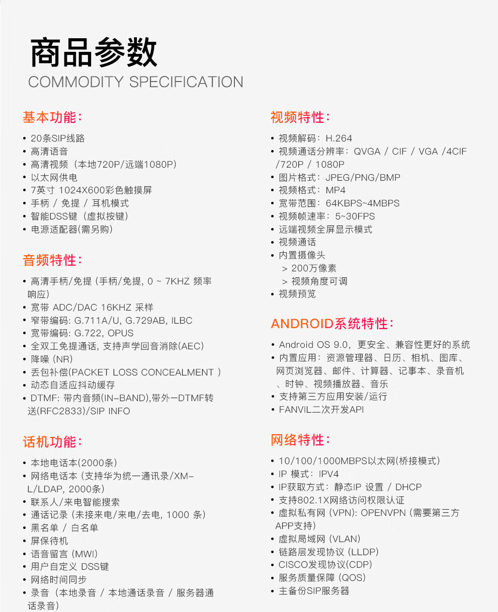 Fanvil F600S смарт телефон для руководителей цветной сенсорный экран сетевой SIP телефон