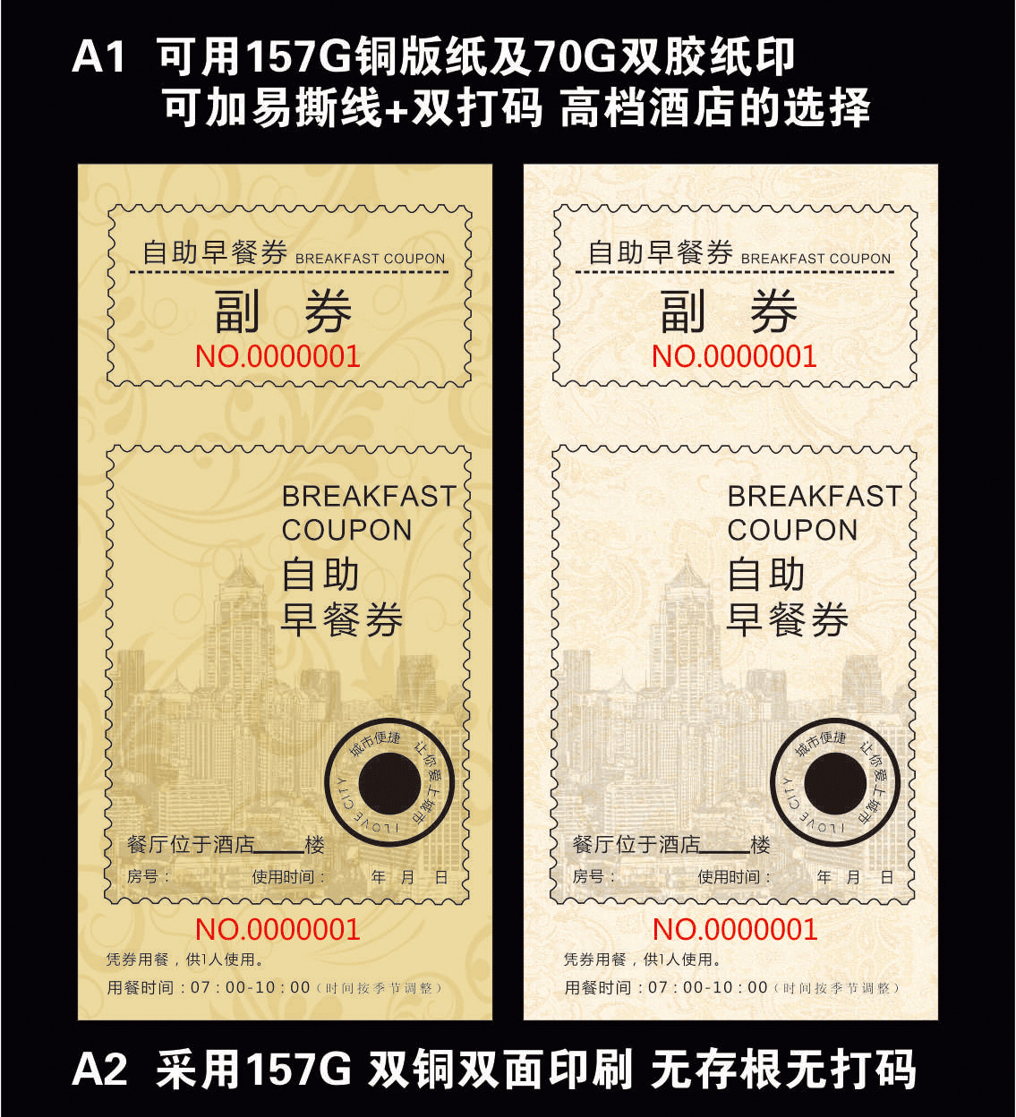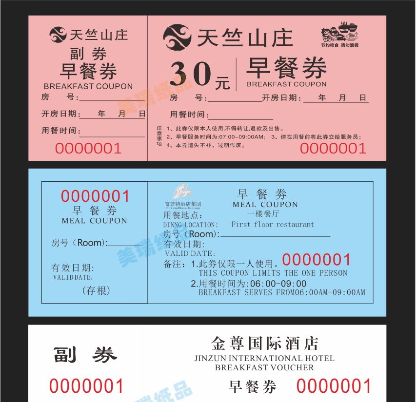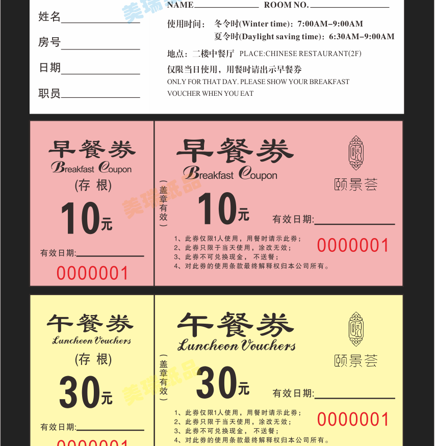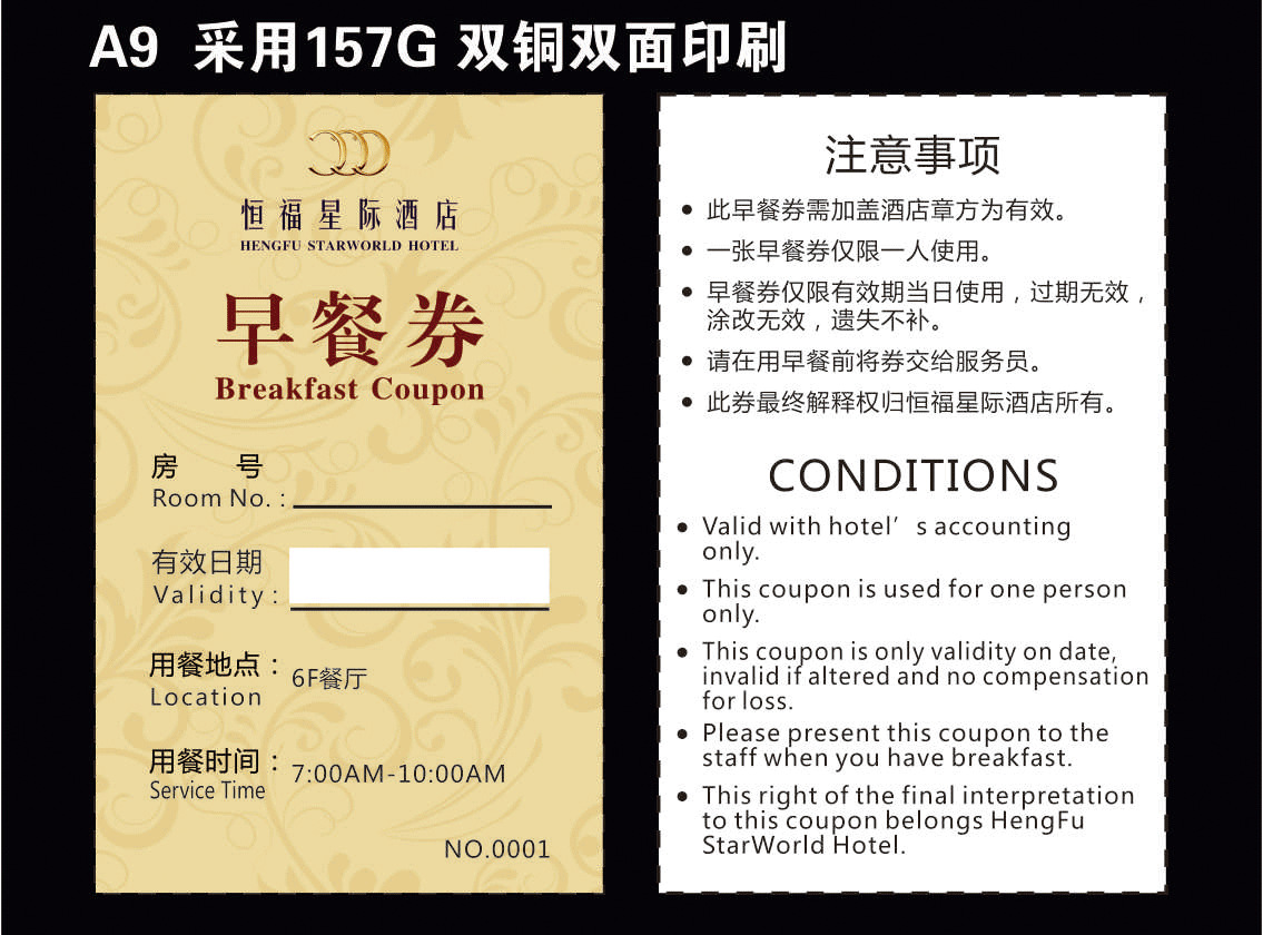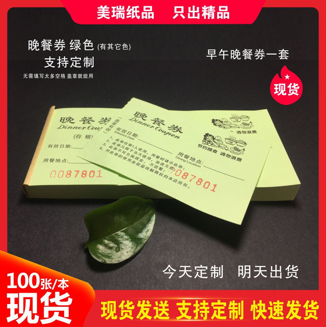 Гостиничный столовая ресторан цветные крафт-бумажные купоны на еду индивидуальная печать медная пластина двусторонний ПВХ купон на завтрак