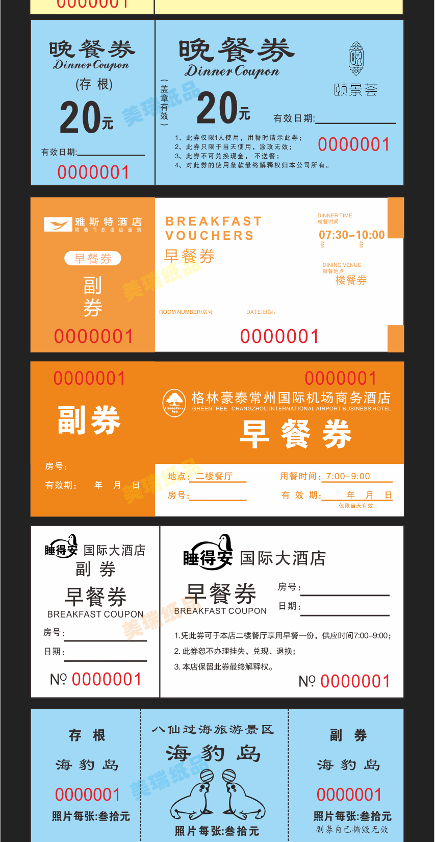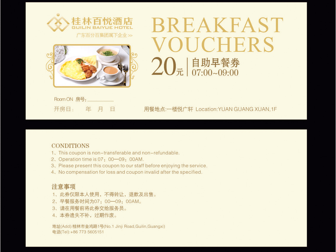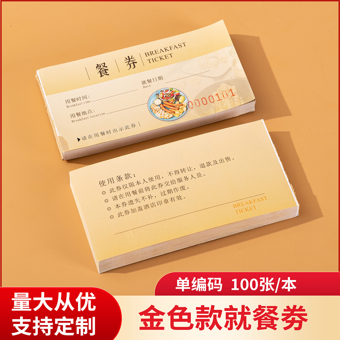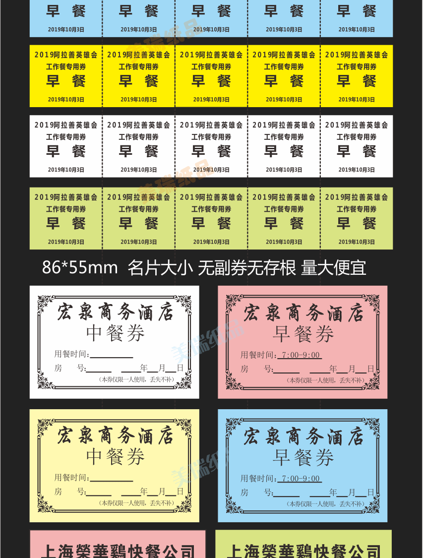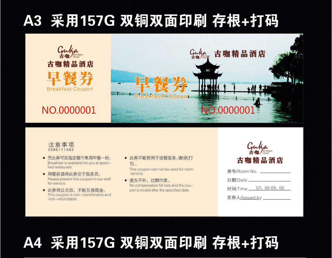 Гостиничный столовая ресторан цветные крафт-бумажные купоны на еду индивидуальная печать медная пластина двусторонний ПВХ купон на завтрак