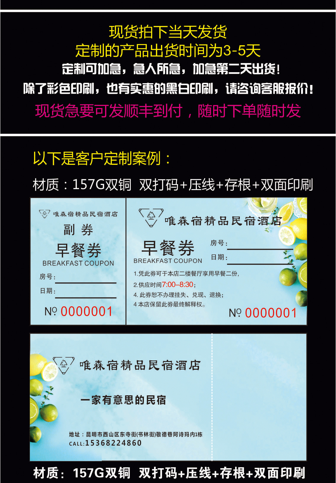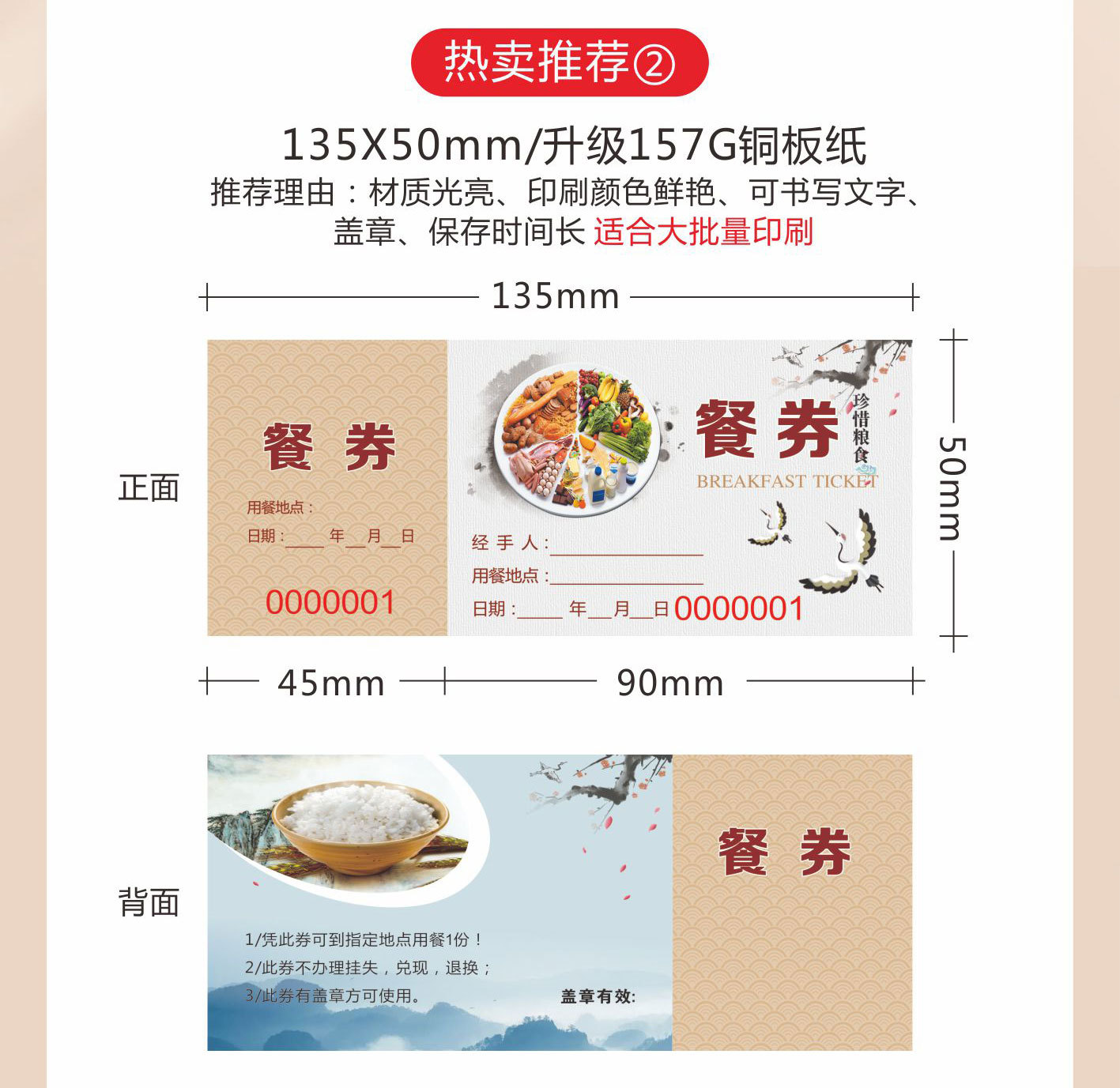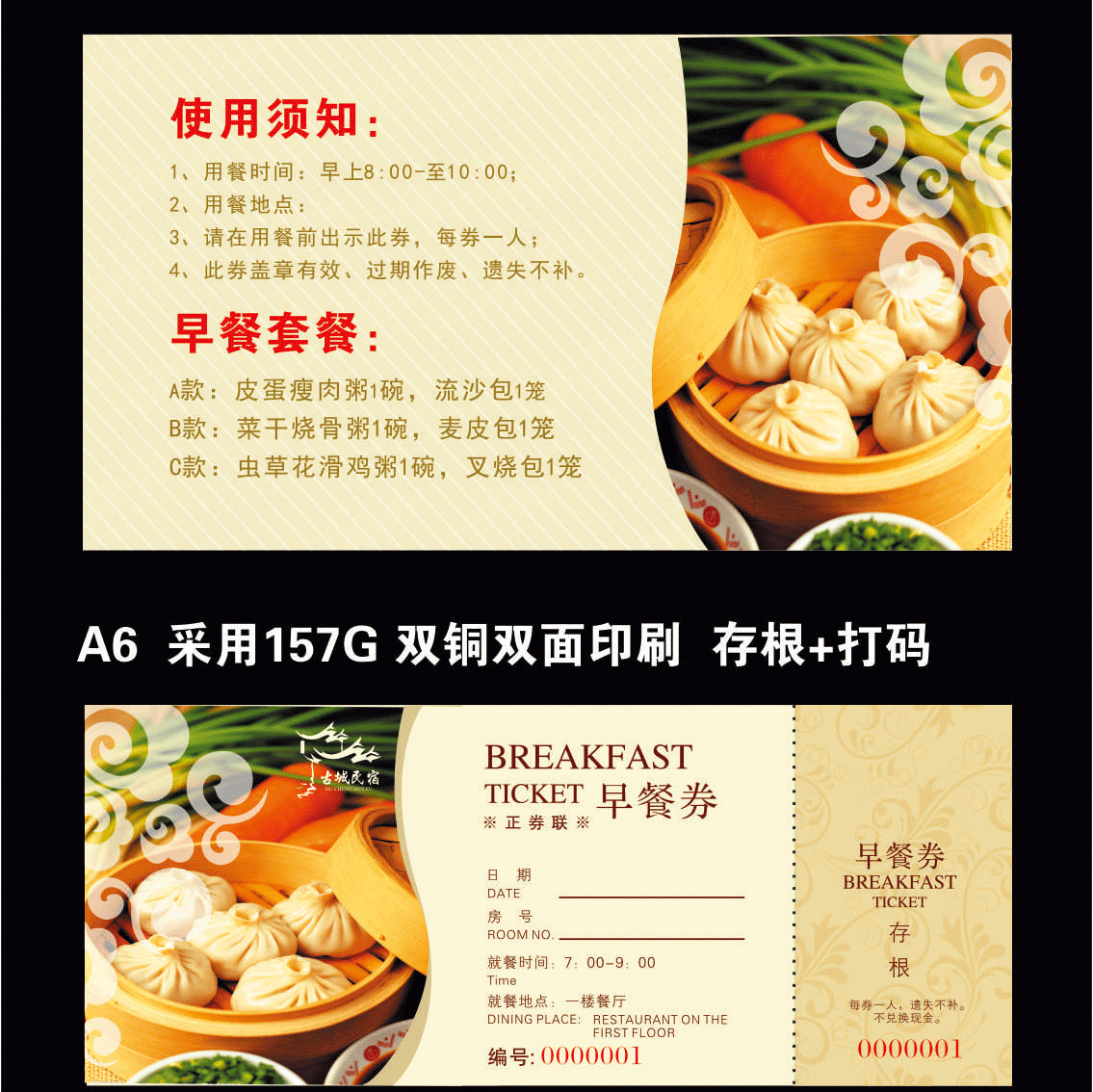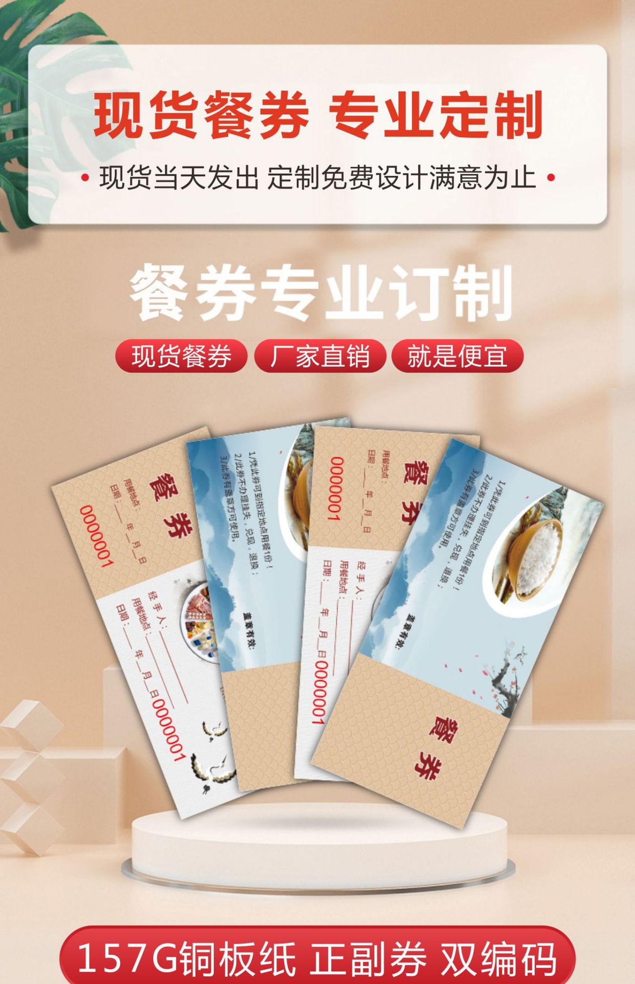 Гостиничный столовая ресторан цветные крафт-бумажные купоны на еду индивидуальная печать медная пластина двусторонний ПВХ купон на завтрак