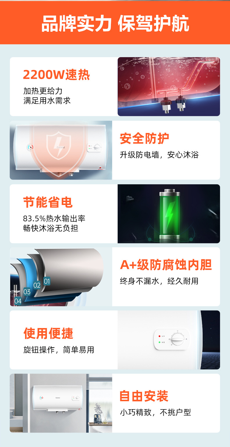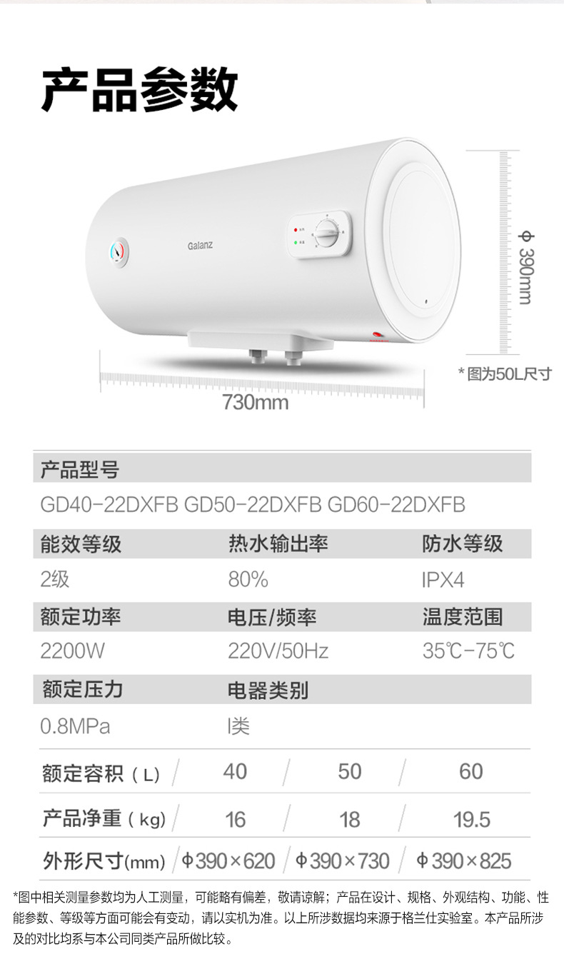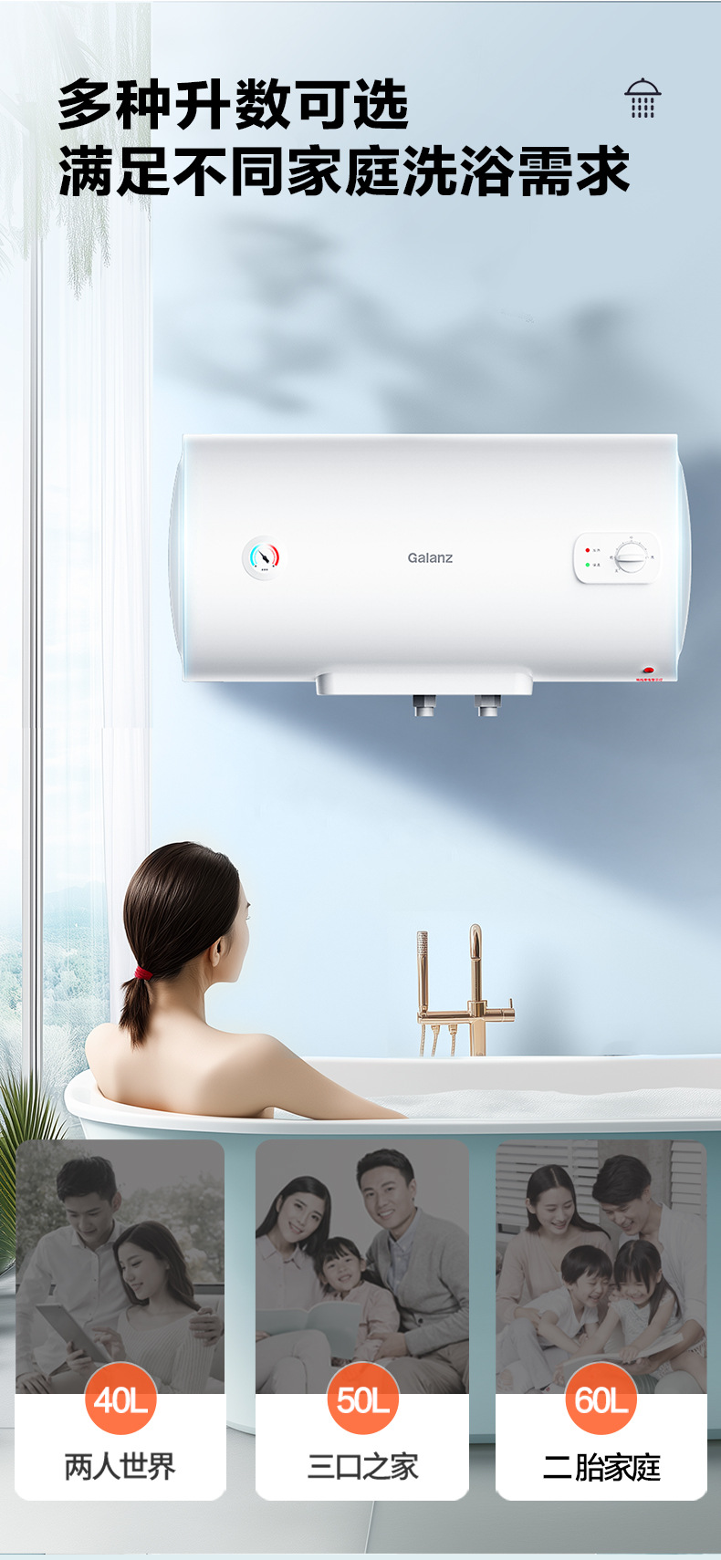 Электрический водонагреватель Galanz 40/50/60/80 литров большой емкости, тип накопительный, подходит для домашнего купания