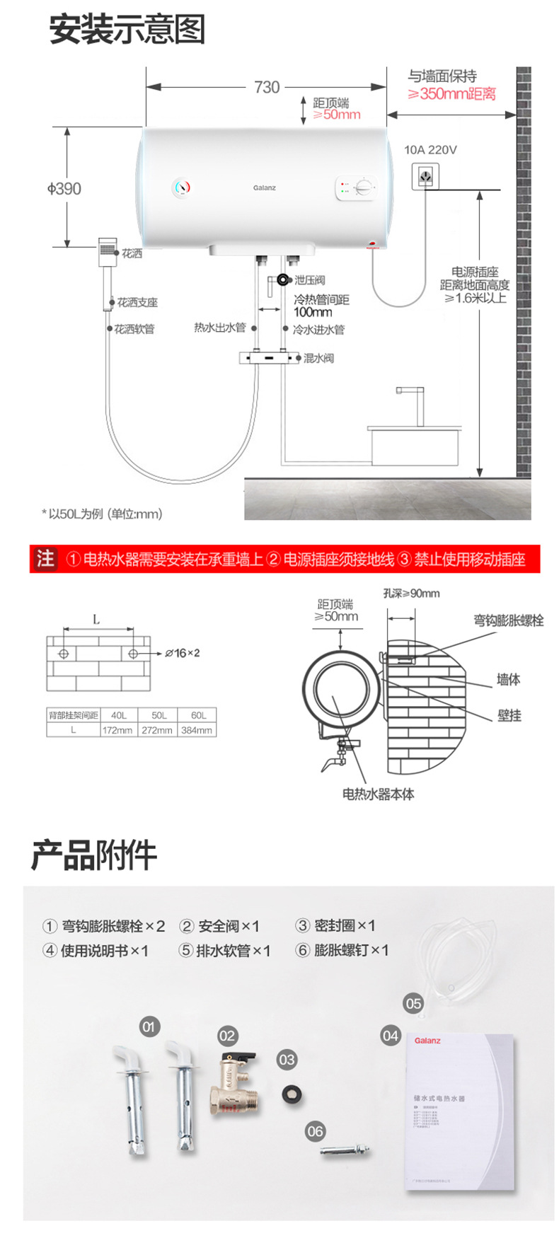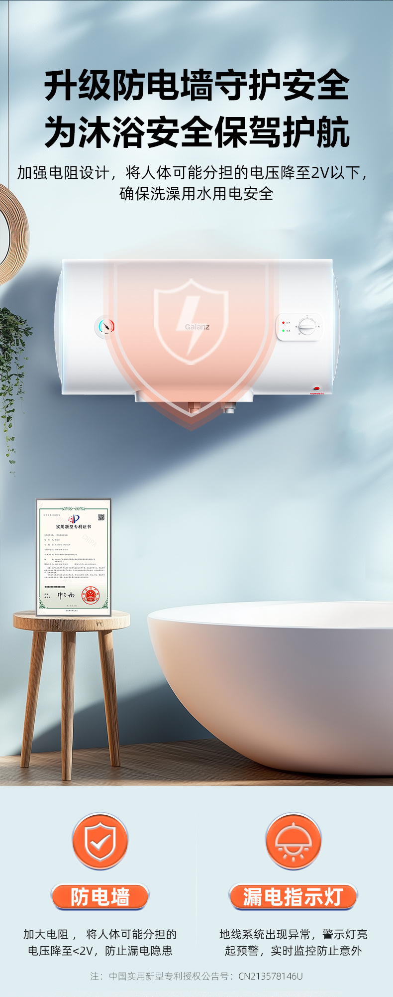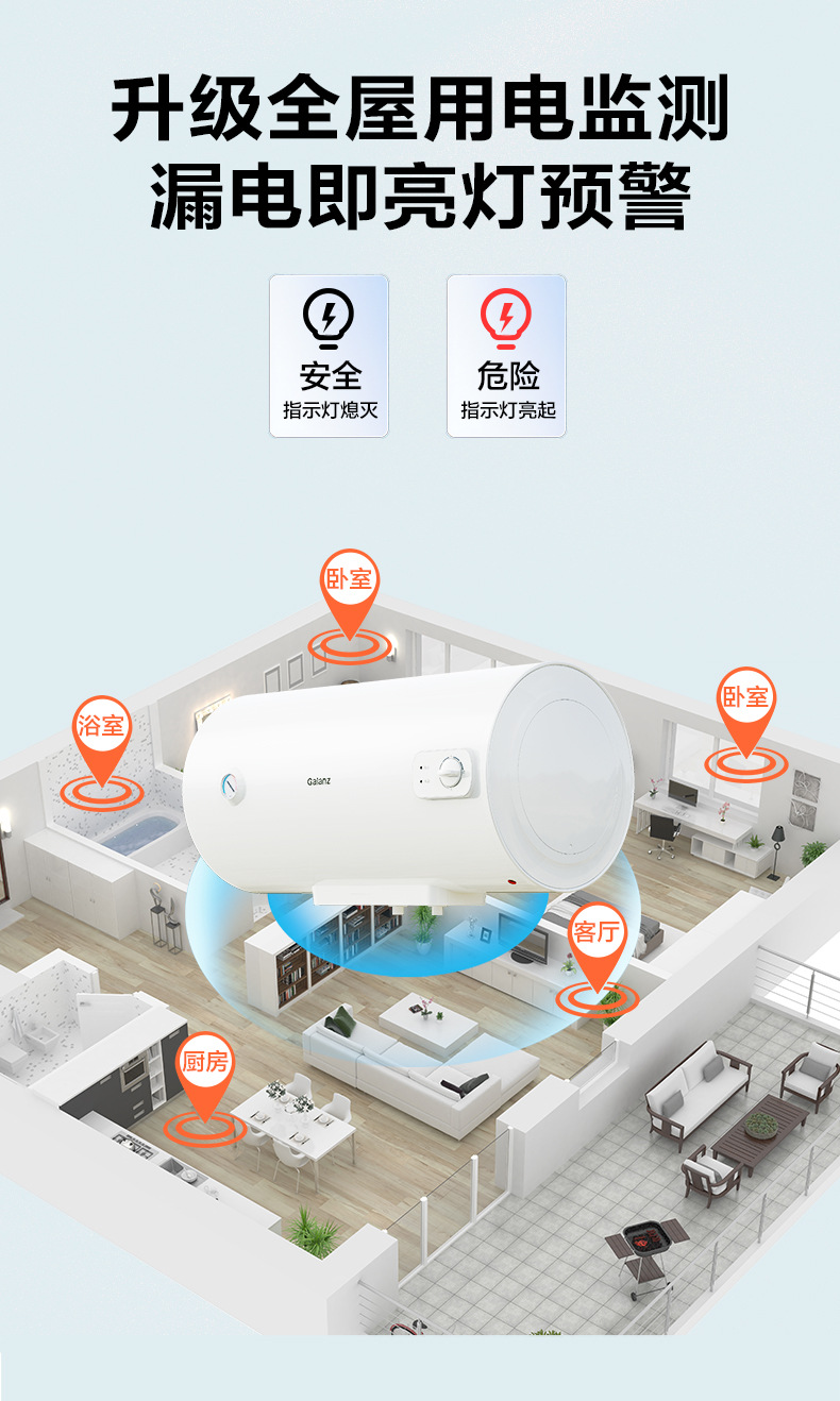 Электрический водонагреватель Galanz 40/50/60/80 литров большой емкости, тип накопительный, подходит для домашнего купания