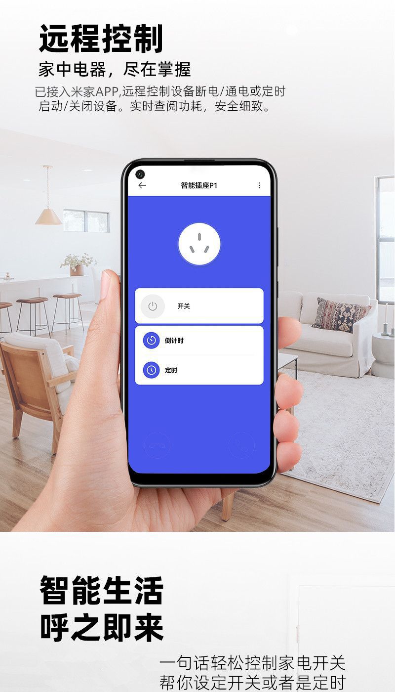 Смарт-розетка, подключенная к приложению Mijia для удаленного управления, поддерживает управление Xiao Ai, статистику и таймер