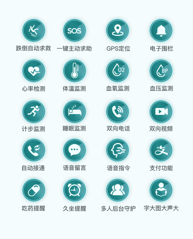 ![]() | Baize full-featured model (video call + heart rate, blood oxygen and body temperature detection + fall alarm + sos for help + background data docking) | ¥279.0 / ≈ 3 361 ₽ | 9999 | 6133227419437 |