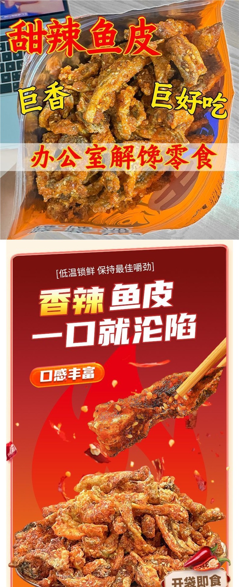 📦 | Sweet and spicy fish skin [500g*2 large bags] total 1.0kg + self-sealing strip --- special sale | ¥27.96 / ≈ 340 ₽ | 101000 | 5992237728839 |