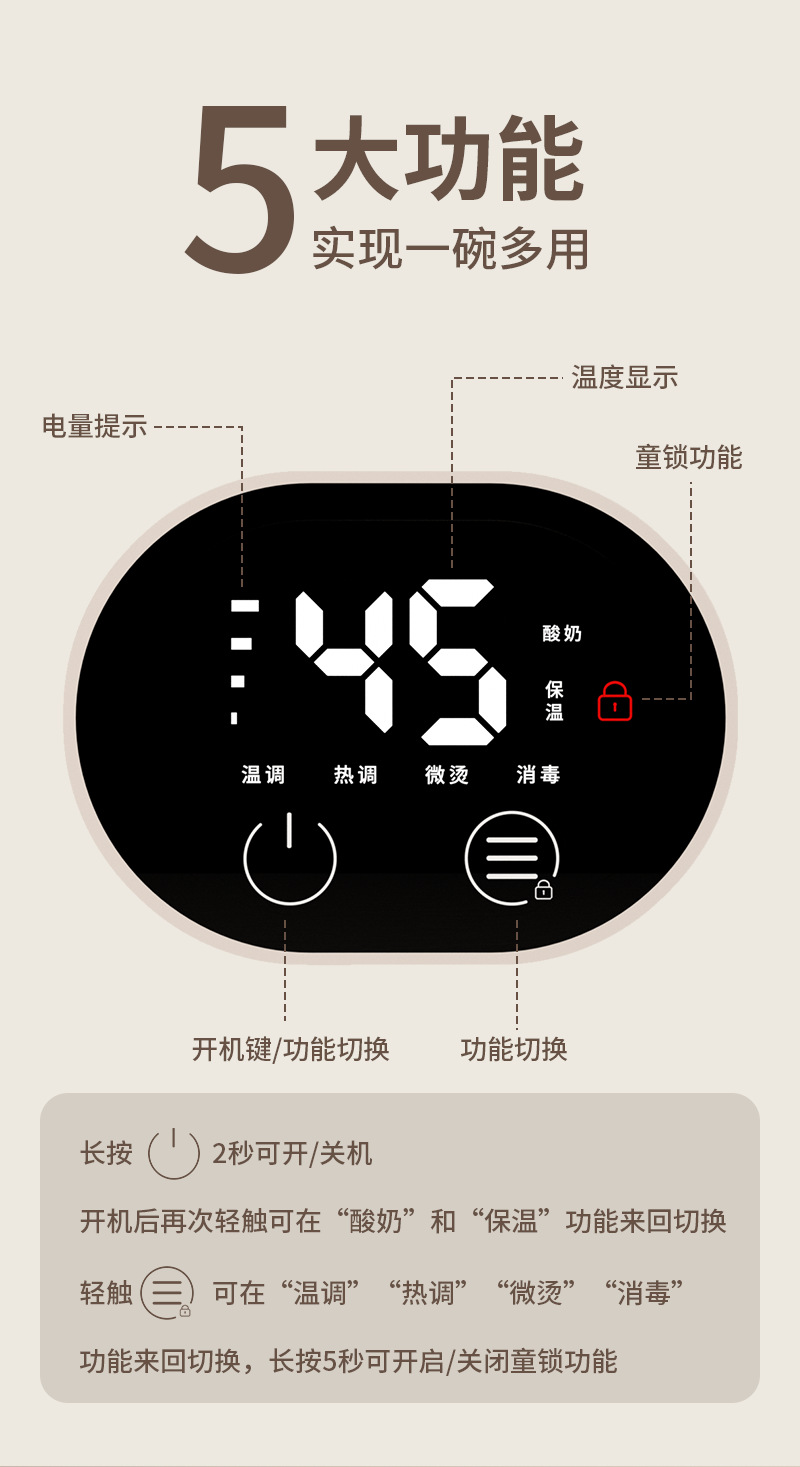 Функция Portable, Quick heat, Heating and keeping warm, Security protection, Intelligent temperature control