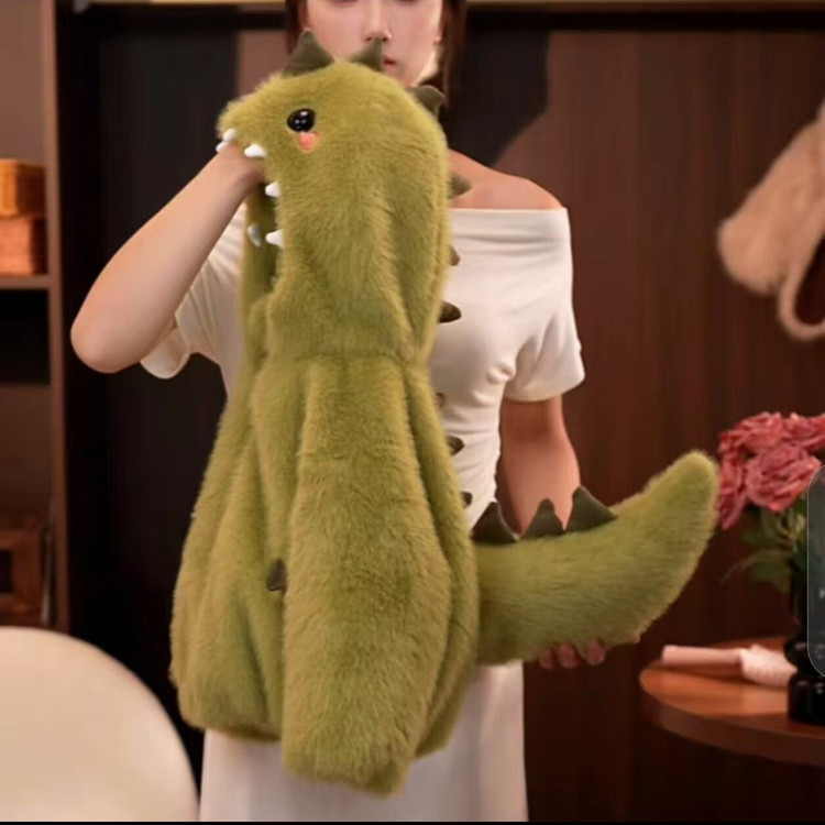 Детская зимняя верхняя одежда шершавая свитер 2025 новый бархатный утолщенный теплый динозавр имитация меха одежда для мальчиков и девочек