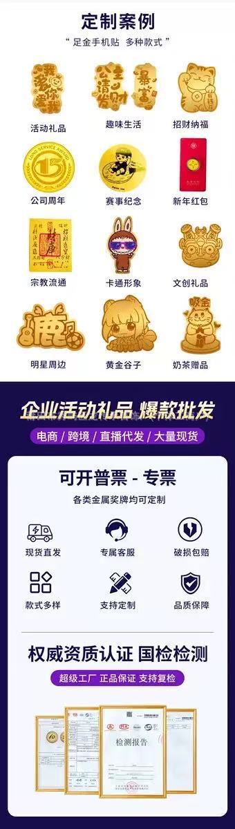 Индивидуальные золотые наклейки для мобильных телефонов, чистое золото 9992 мг, богатая принцесса, наклейка для мобильного телефона, подарок для прямого эфира