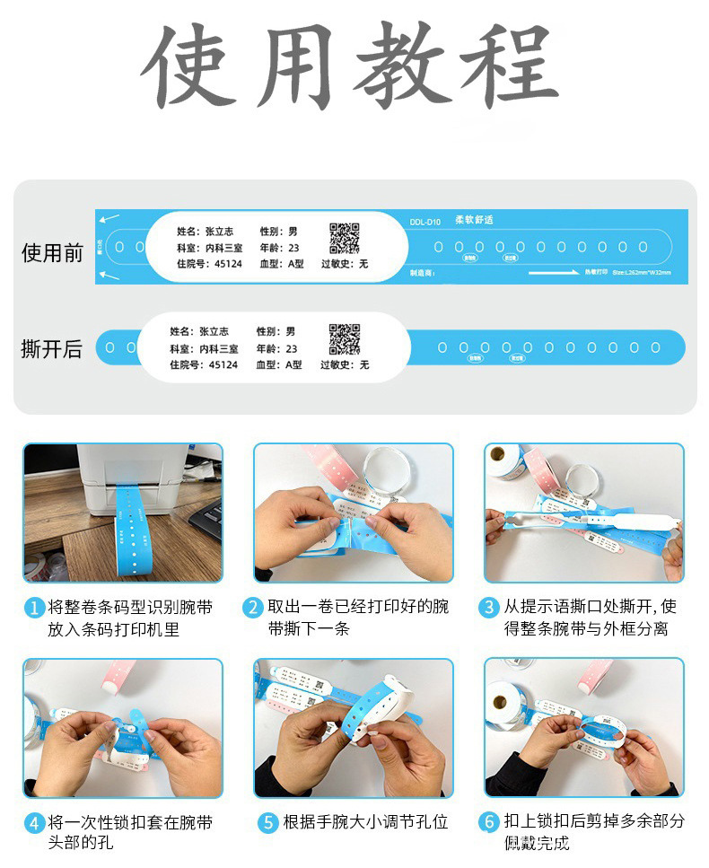 Одноразовый медицинский идентификационный браслет с термопечатью, браслет для детей и взрослых, идентификация в больнице