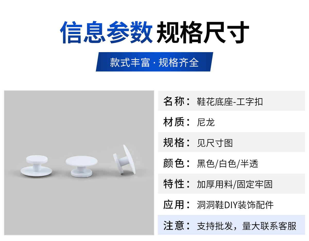 类型: 鞋扣 洞洞鞋底扣 DIY配饰 花园鞋配件 底座卡扣 鞋花底扣 工字口 透明工字扣 软胶透明 侧边扣 固定扣 暗扣 配件辅料 鞋带扣 鞋花 卡通文具扣