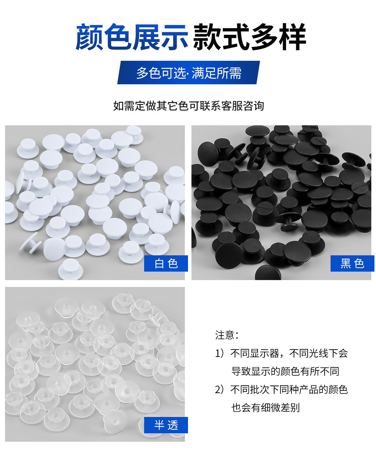 处理与颜色: 透明 黑色 彩色 英文标识 卡通 无味滴塑 环保工字扣 防